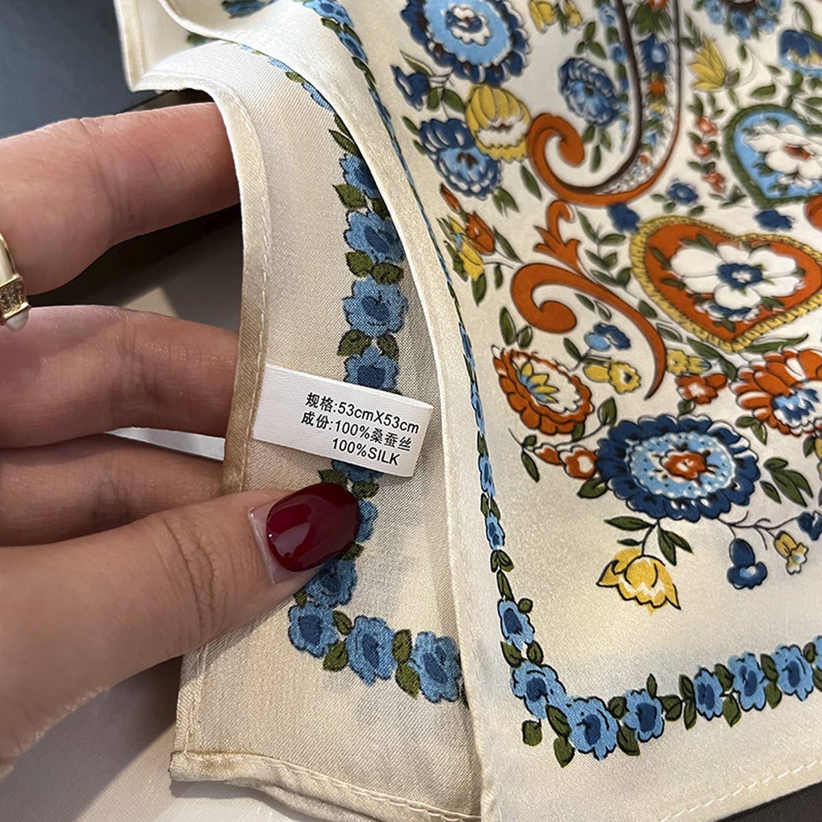 100% Silk Floral Scarf, Square, Versatile, Gift_CWASC0544
