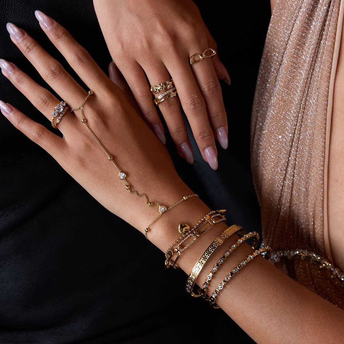 18K Gold Heart Bead Chain Bracelet, Titanium Steel_CWAJE4839