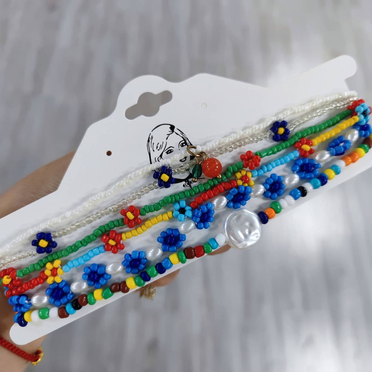 2024 NEW BLUE FLOWER PEARL RICE BEAD NECKLACE