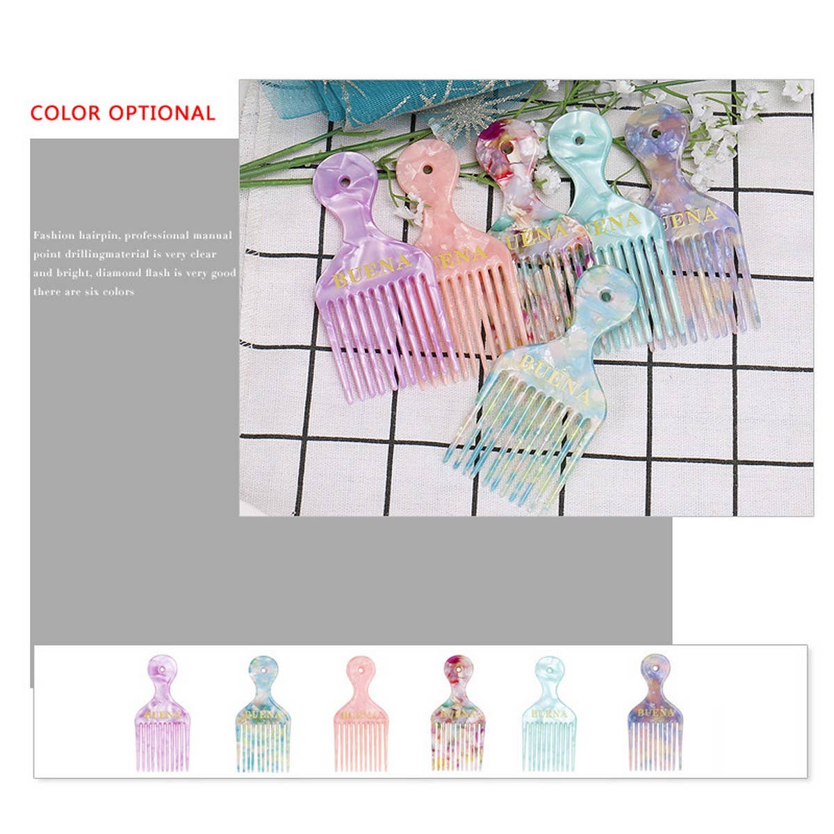 ACETATE INSERT COMB WIDE LONG TOOTH CURLING COMB