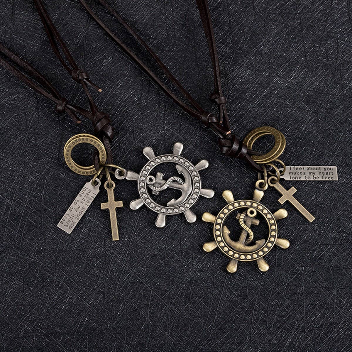 ADJUSTABLE VINTAGE RUDDER COWHIDE NECKLACE_CWMM4600