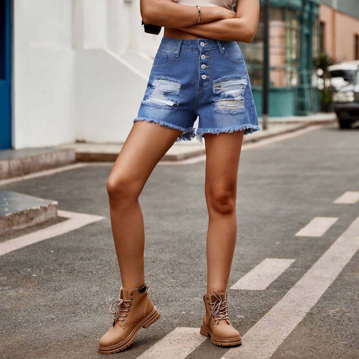 AMERICAN FLAG PRINT WASHED RIPPED DENIM SHORTSSIZE:OS(1)95% RAYON, 5% POLYESTERMADE IN CHINA