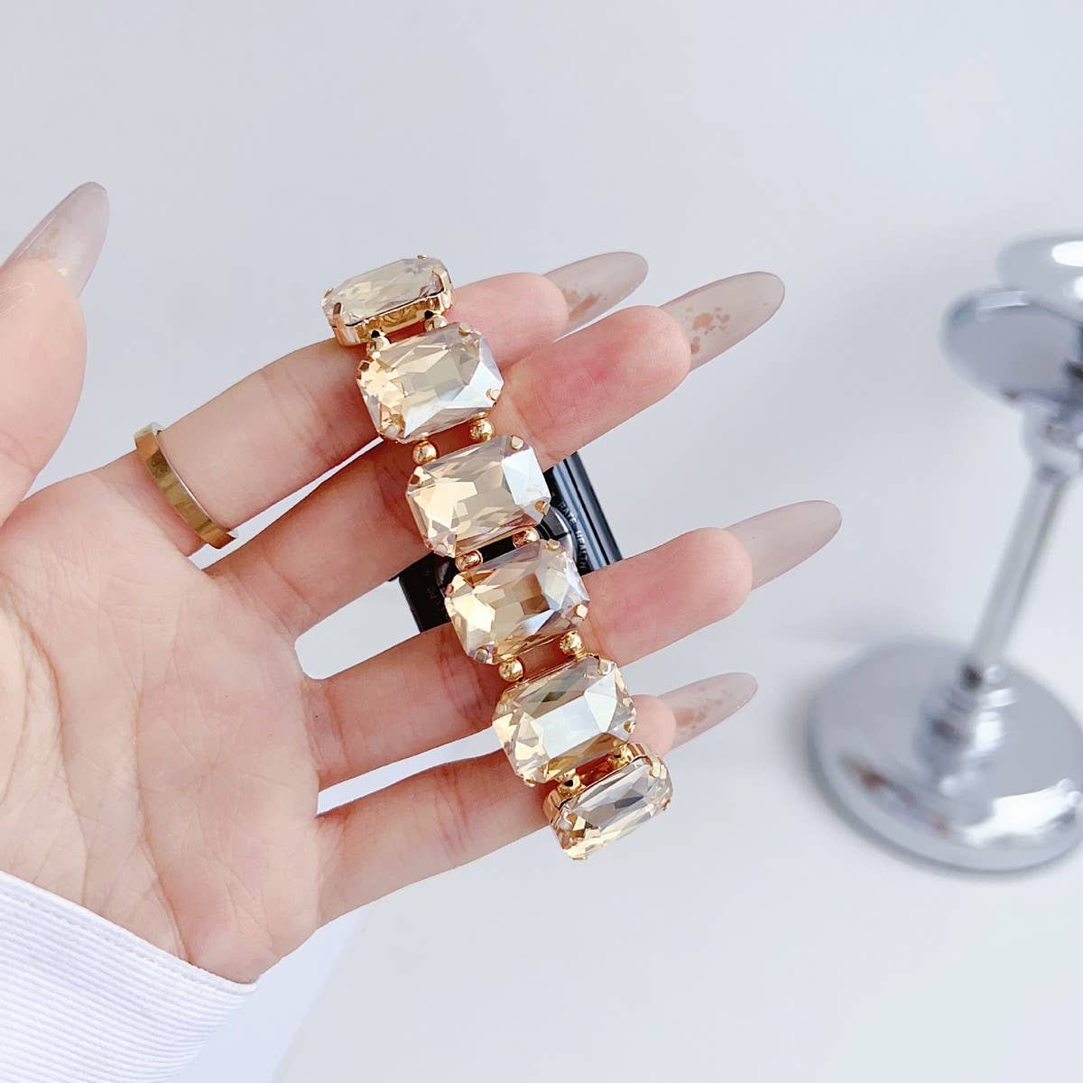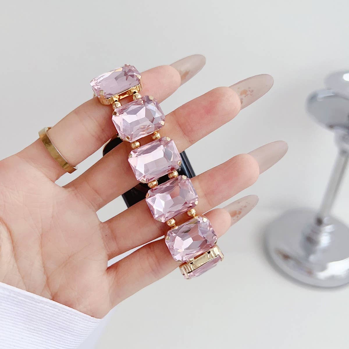 APPLE WATCH 9 RHINESTONE WHITE STONE ELASTIC STRAP