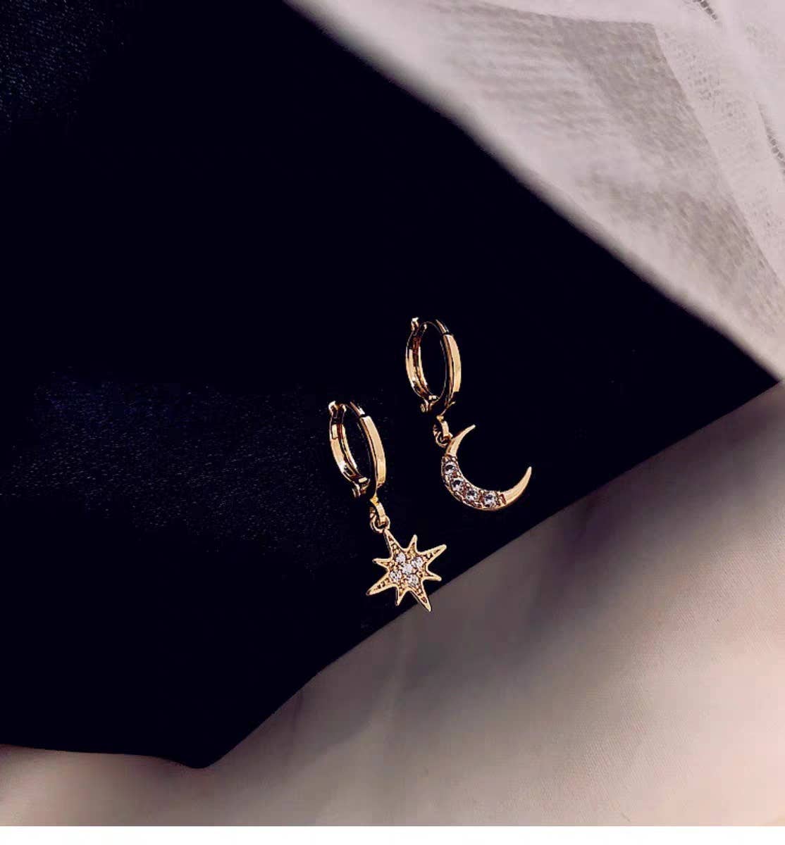 Asymmetric star-moon-ear diamond earrings