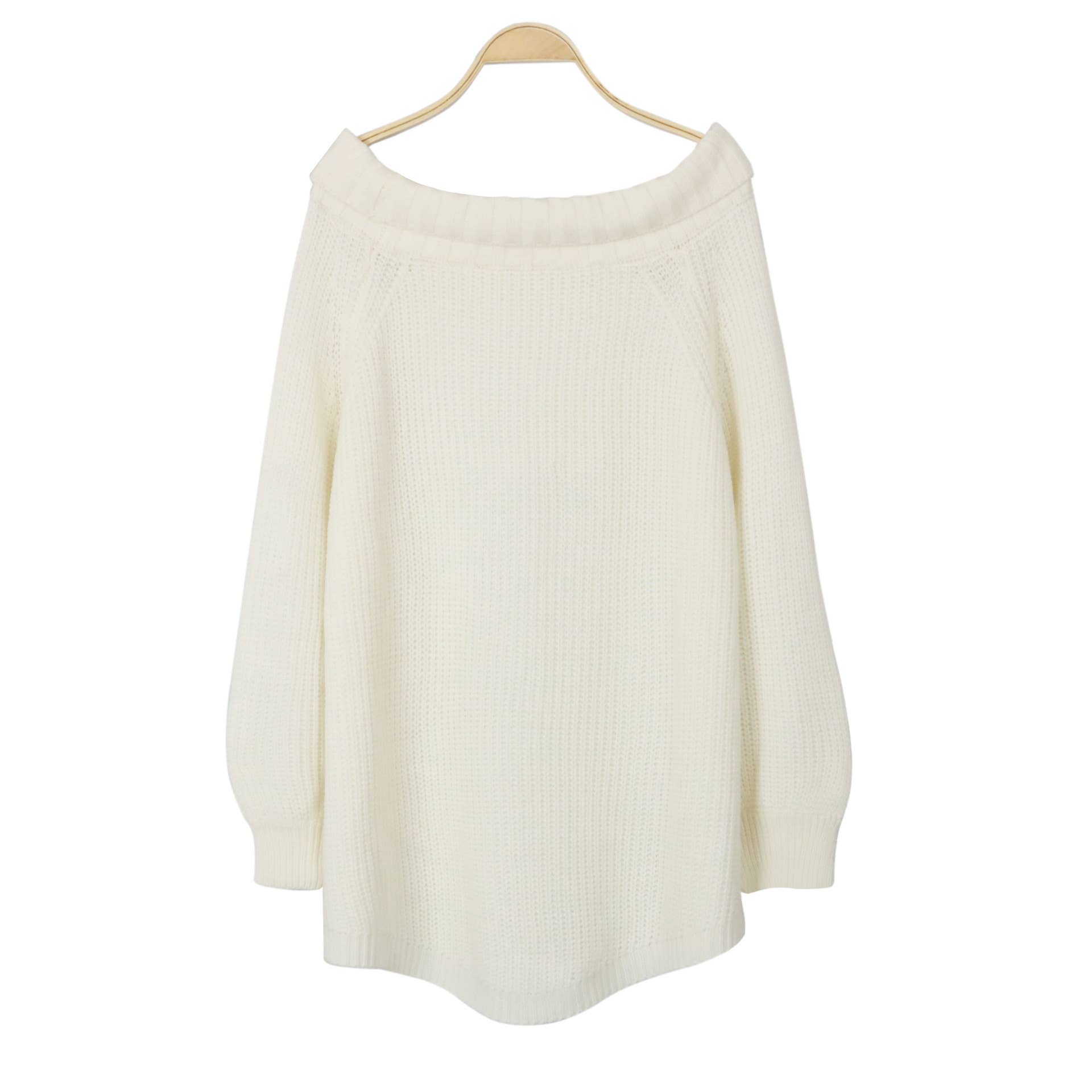 BAT-SLEEVED LINE-NECK SOLID COLOR BASE SWEATER