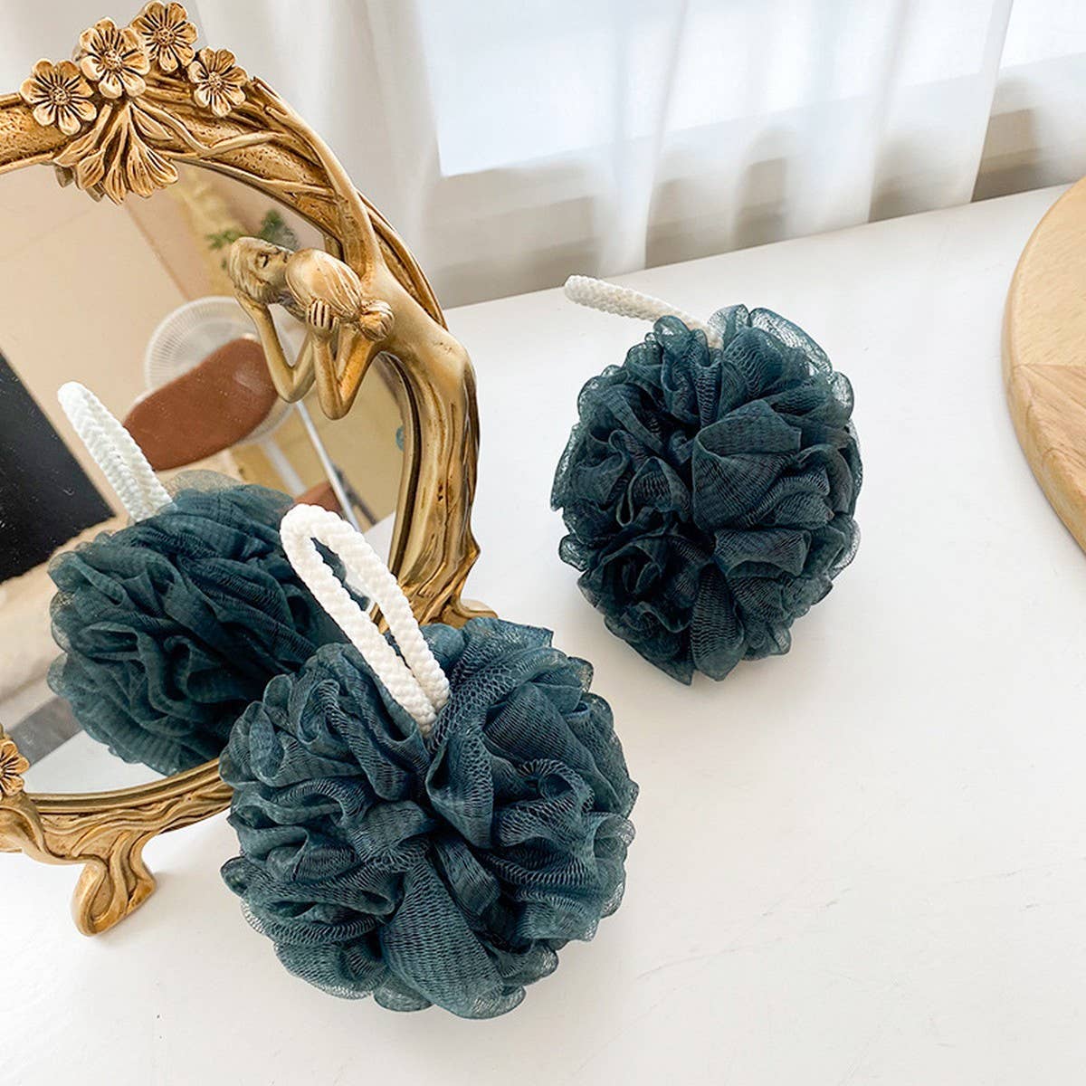 BATH POUF LARGE BATH 50G GREY BATH POUF 100% PE COLOR:PEACOCKBLUE WEIGHT:50G MADE IN CHINA