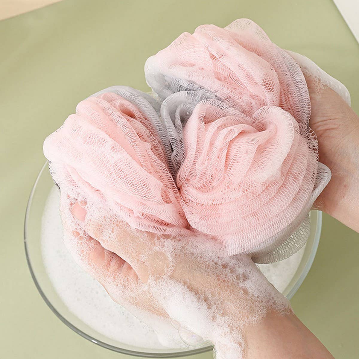 BATH POUF LONG LANTERN BATH FLOWER BALL 100% PE COLOR:PINK,GREEN,KHAKI WEIGHT:100G MADE IN CHINA