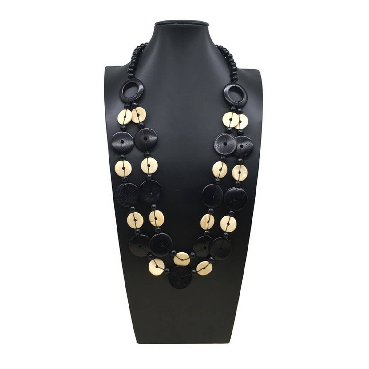 BOHEMIAN DOUBLE COCONUT WOOD BEAD NECKLACE