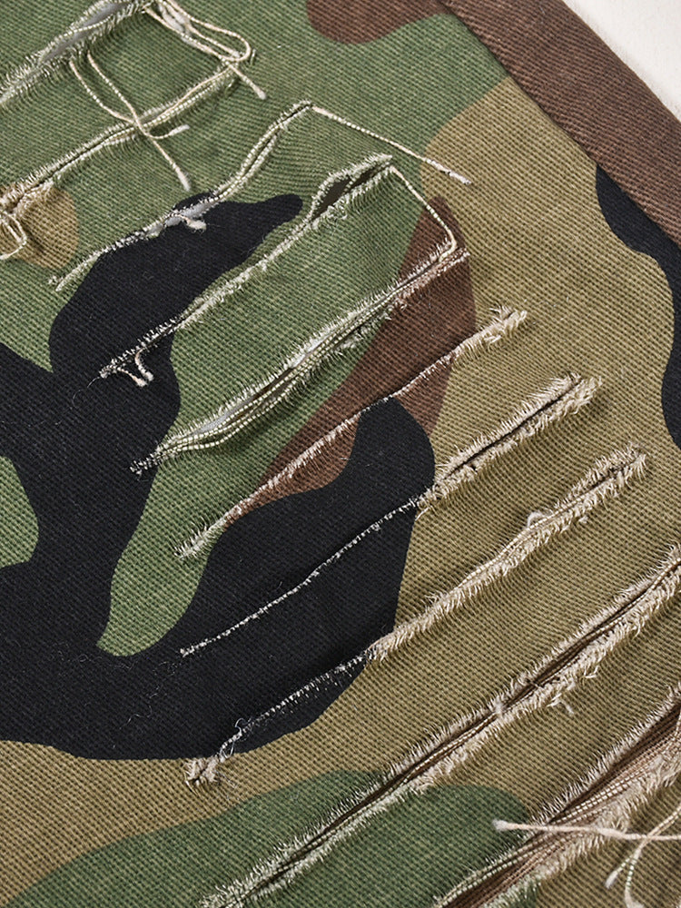 Camouflage Sexy Tassel Hole Casual Mini Skirt