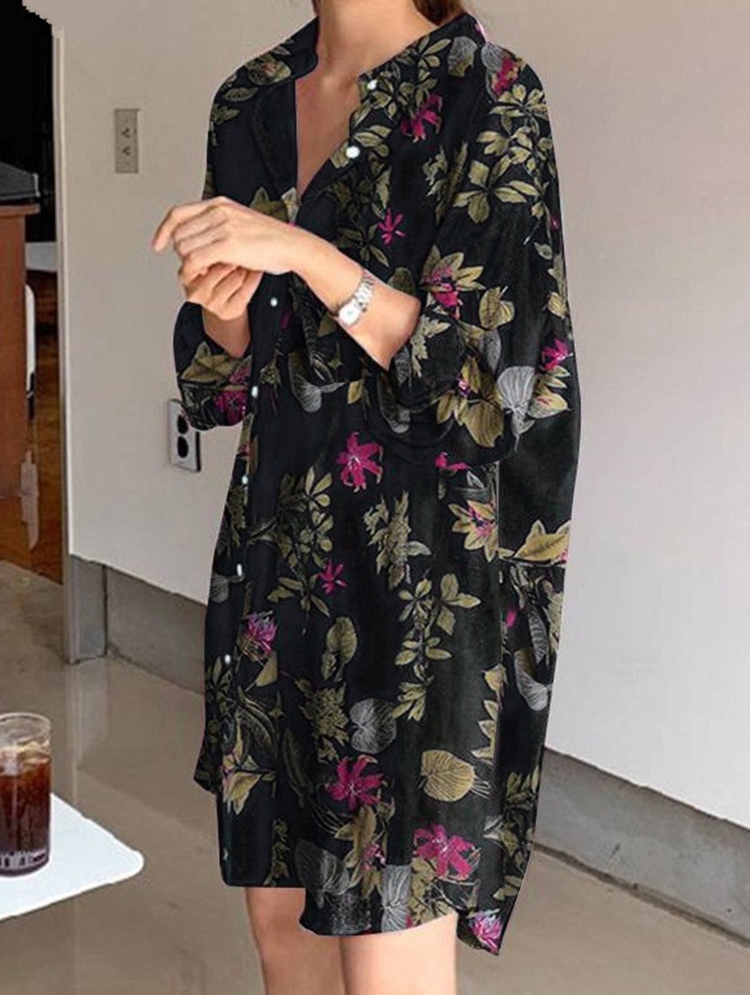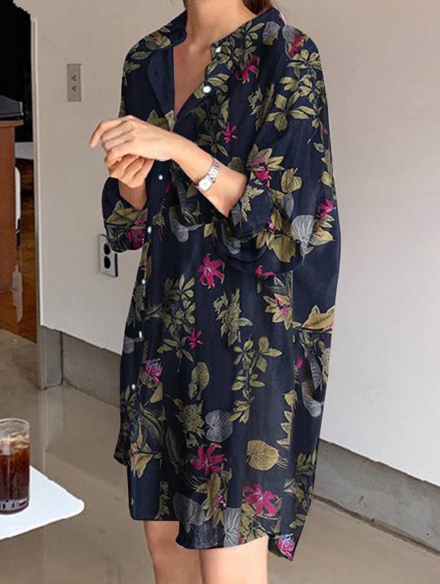 Cardigan long-sleeved lapel mid-length shirt
