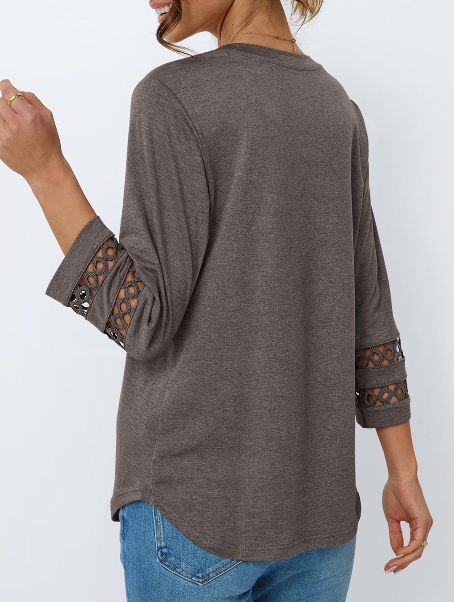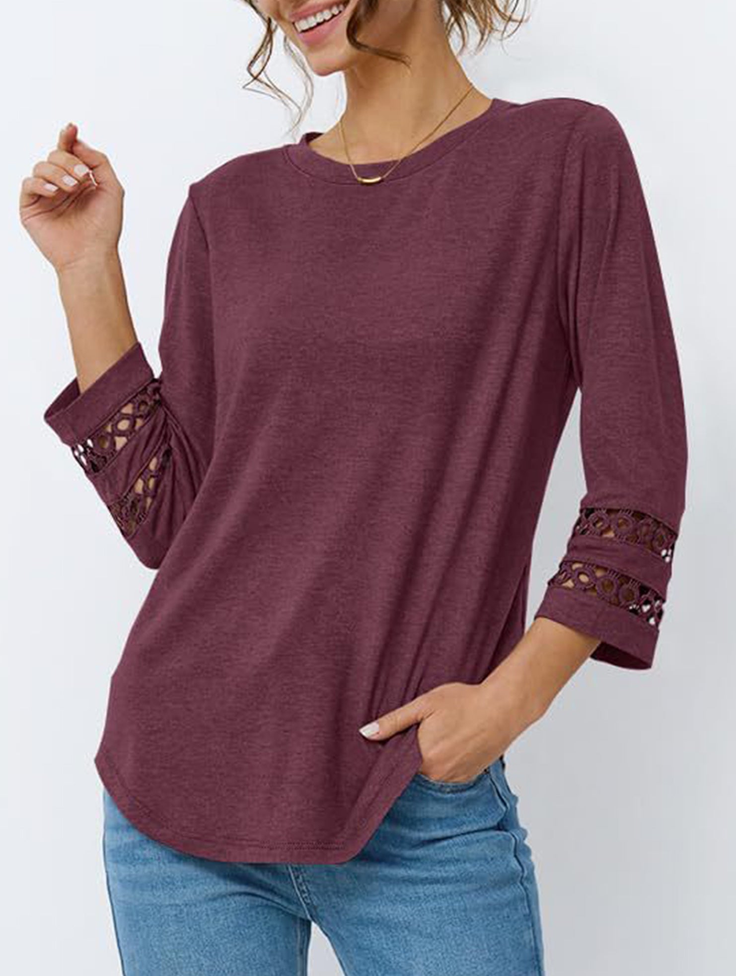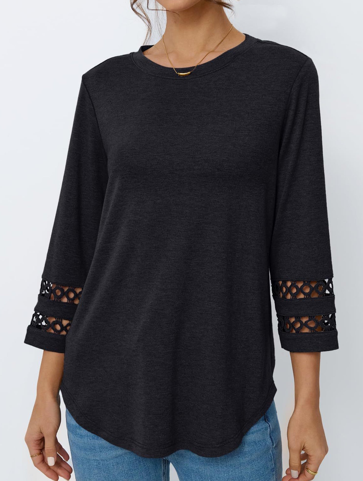 Casual Crew Neck Lace Tunic Top