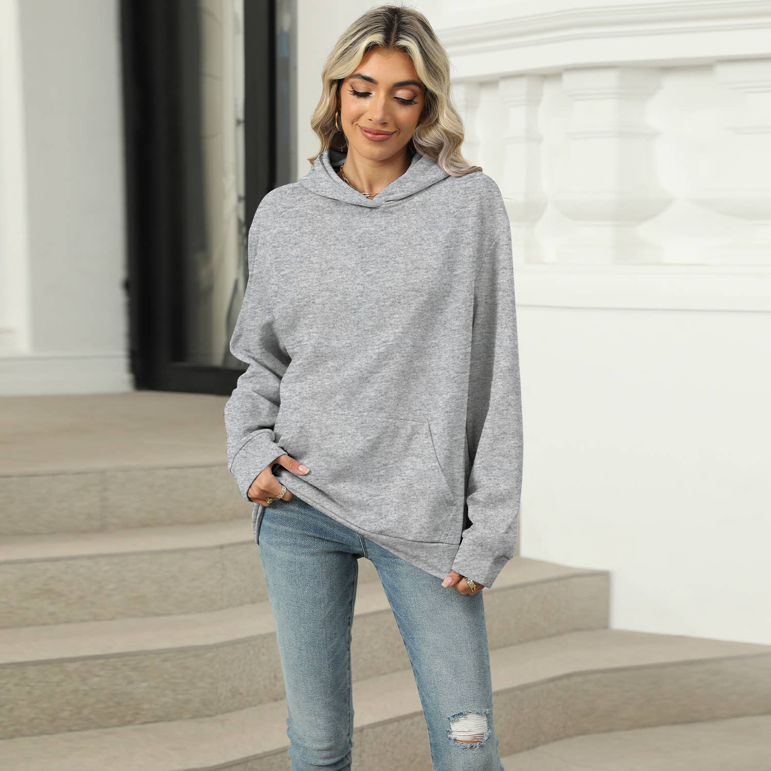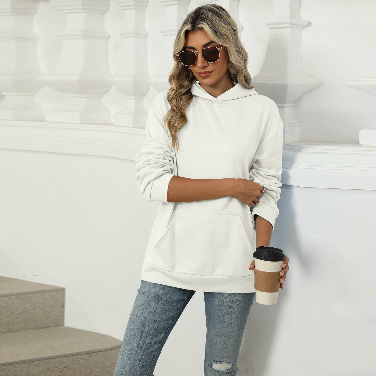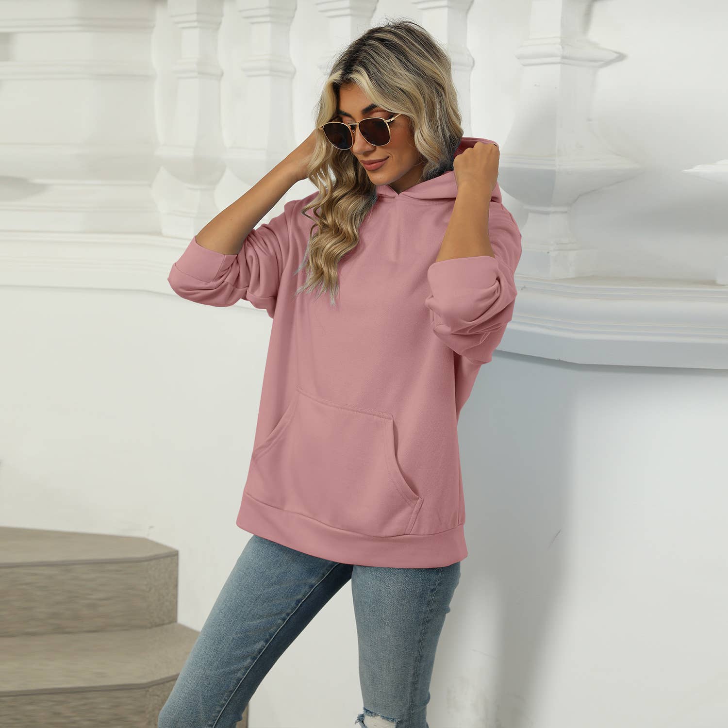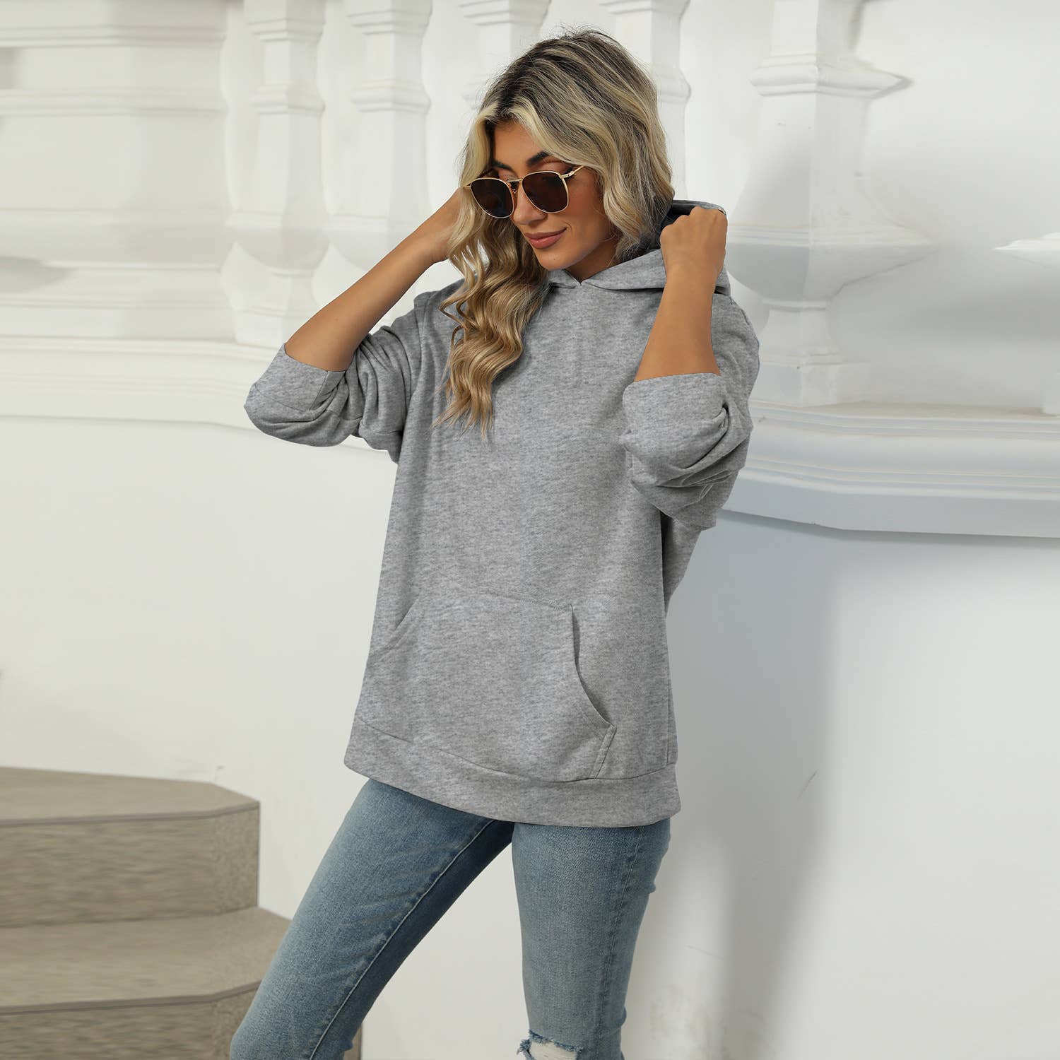 CASUAL HOODED POCKET HOODIE SOLID COLOR TOP