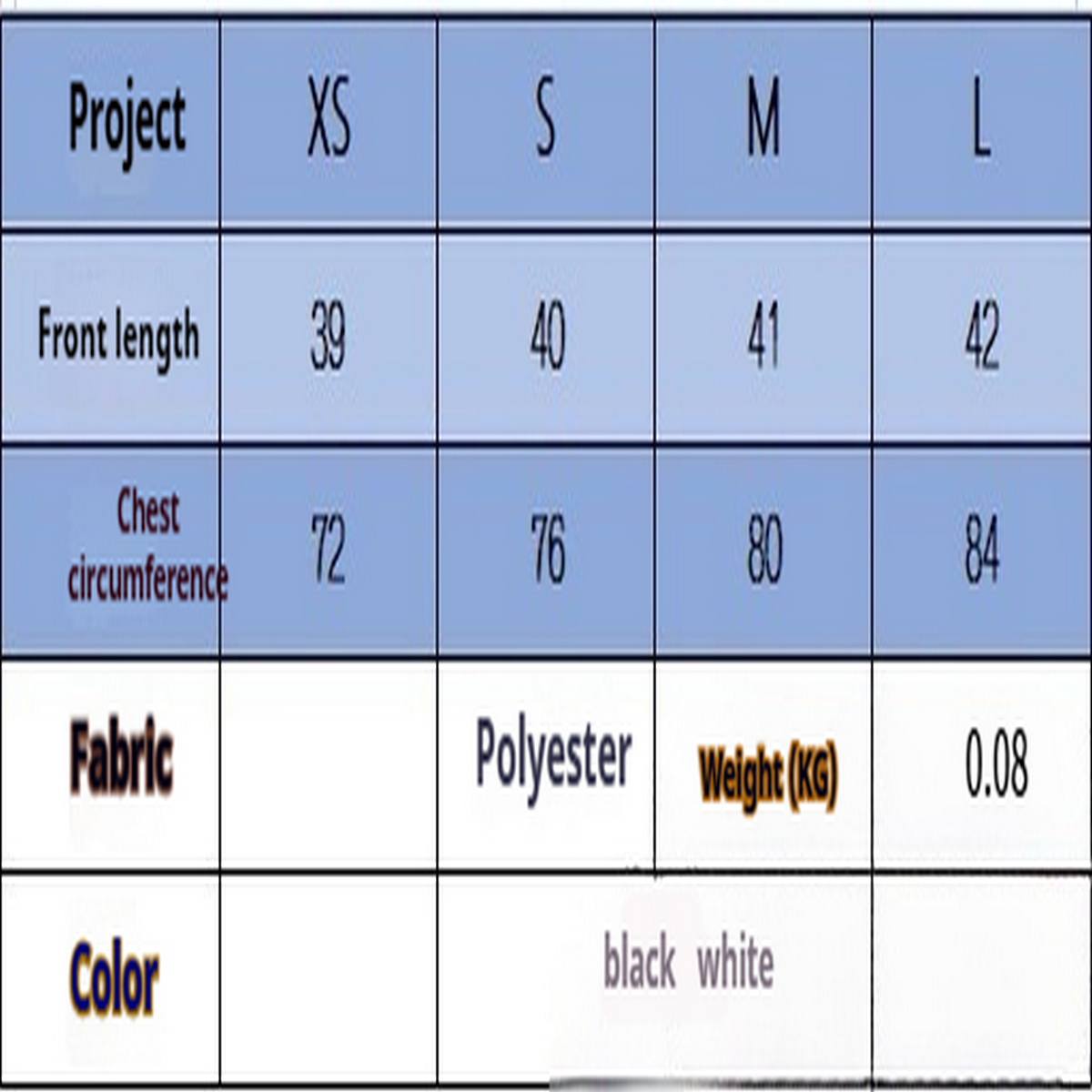 - Material: Polyester (polyester fiber)- Size: XS, S, M, L- Weight: 80g