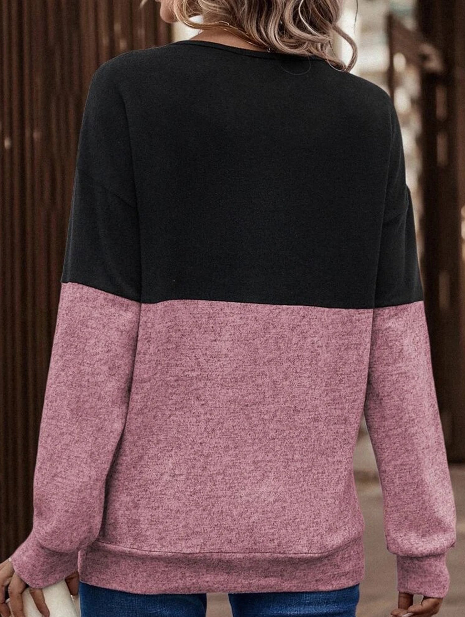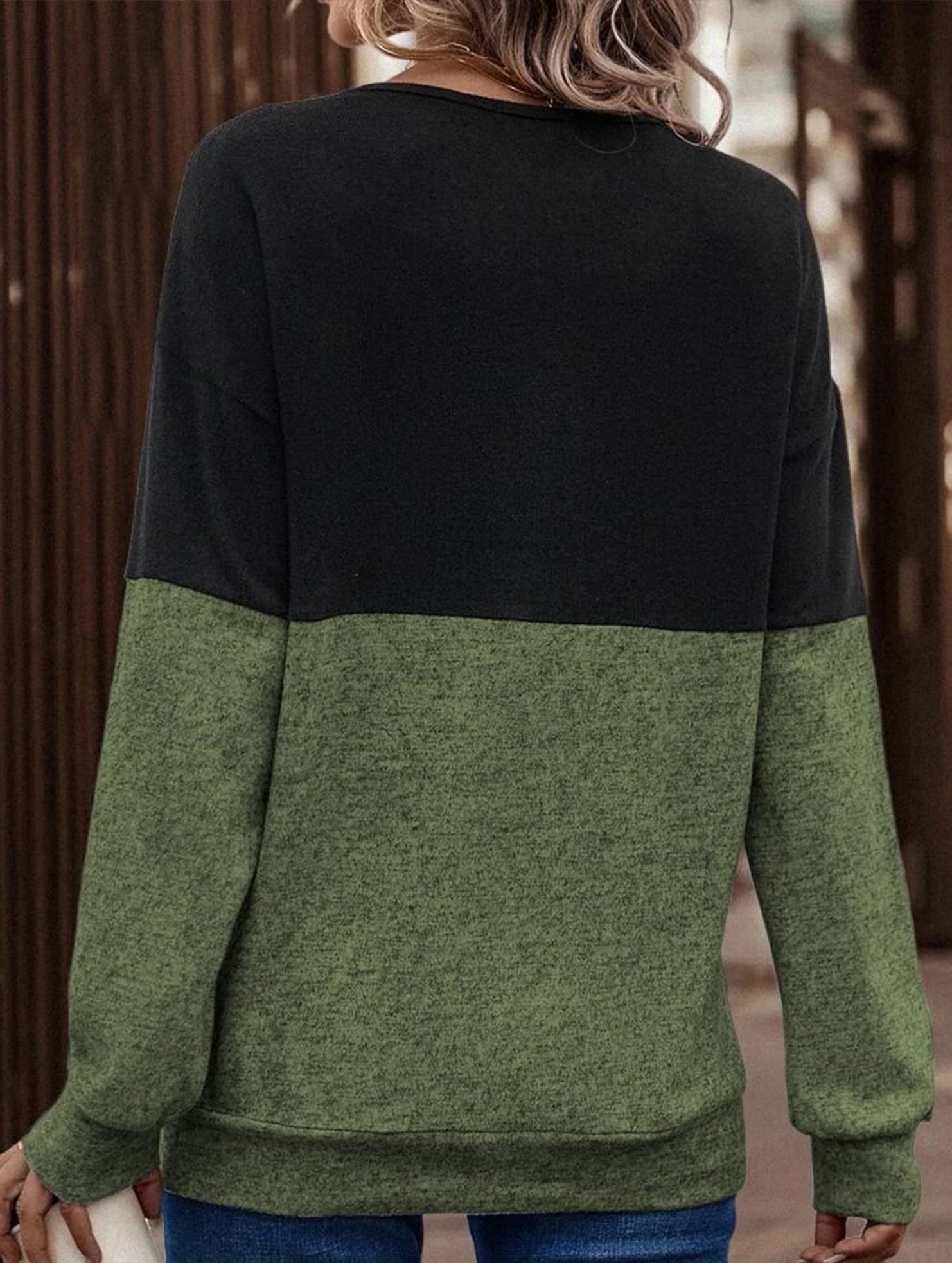CASUAL V-NECK CROSS-CONTRAST SHIRT TOP