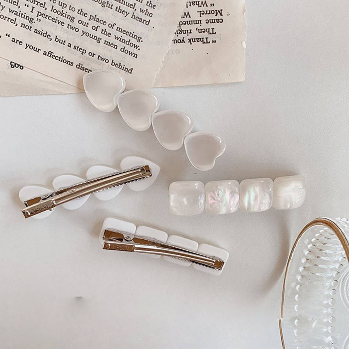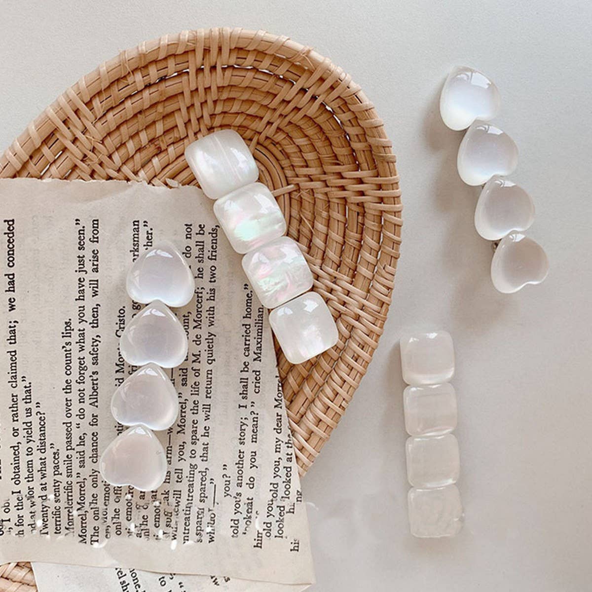 ??Material: Acrylic ??Design Elements: Heart and square shapes with a cat-eye stone for a sweet and playful look ??™â€??�Â??br>??Style: Cute and whimsical, perfect for adding a sweet, eye-catching touch to your hairstyle