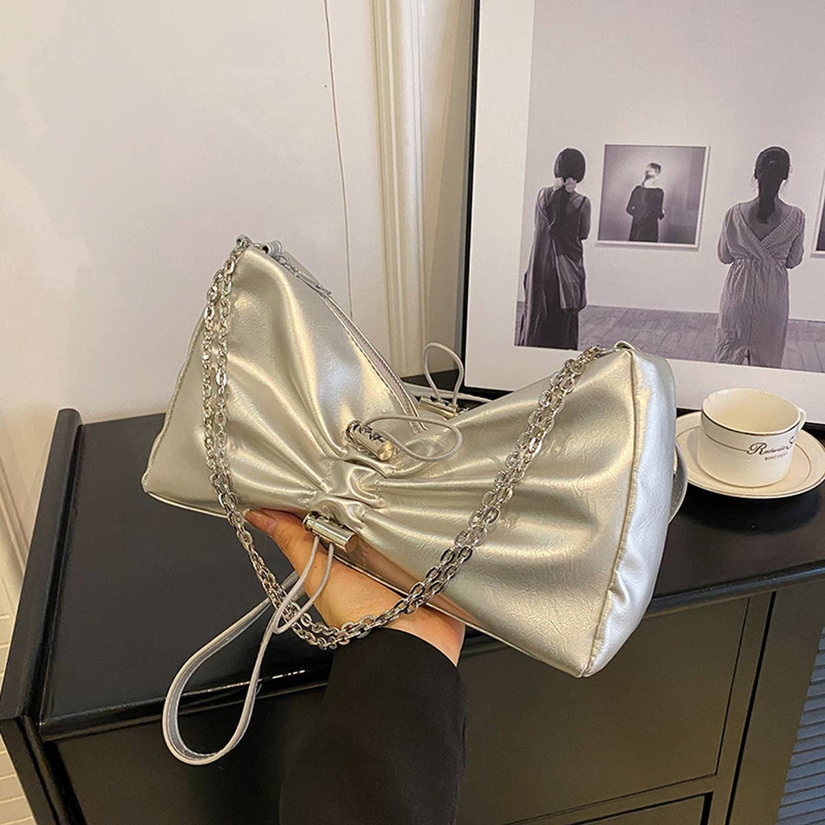 CHAIN PLEATED BAG VERSATILE SHOULDER BAG
