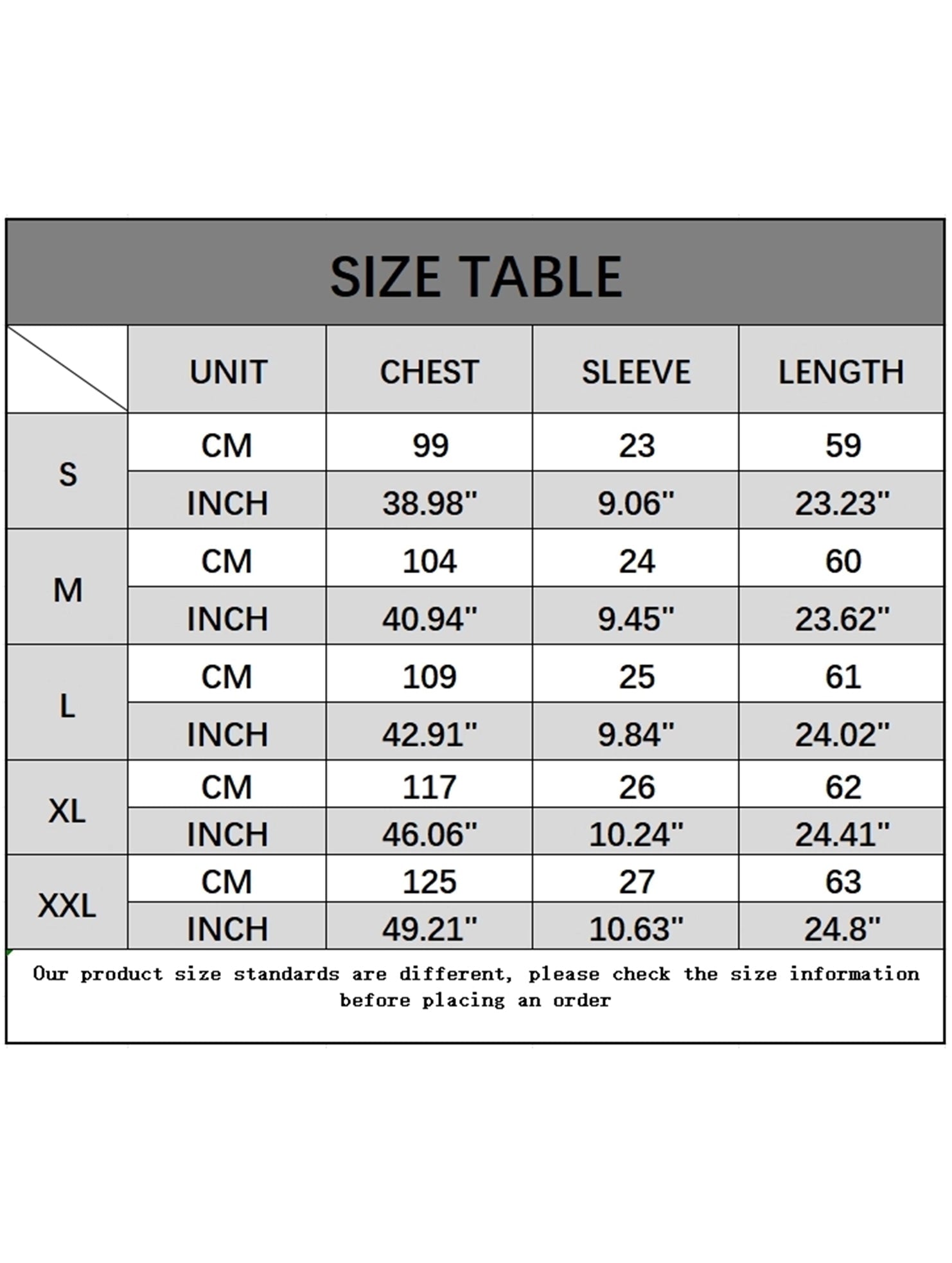 Sizes Available: S, M, L, XL, XXL