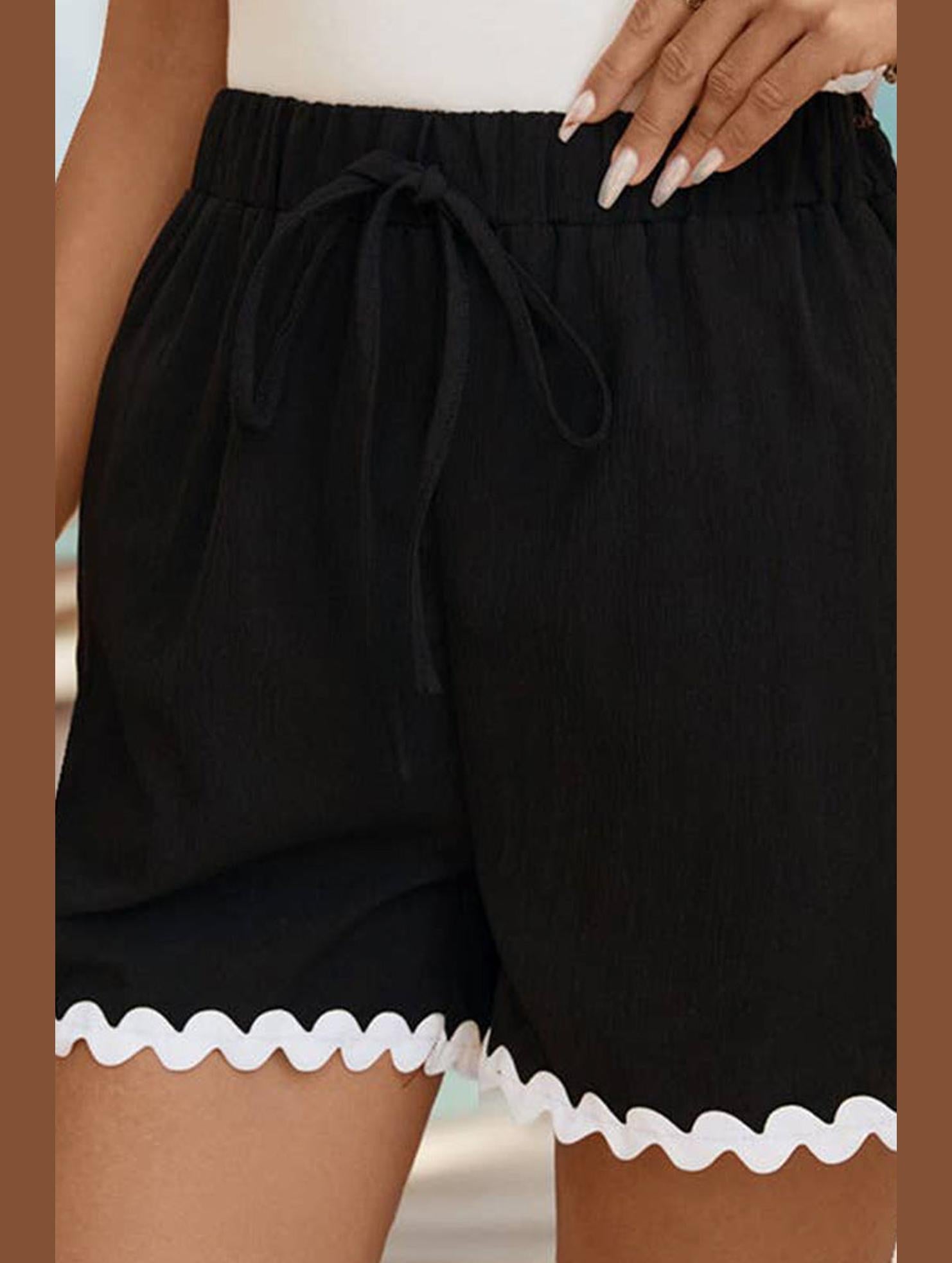 CONTRAST COLOR LACE CASUAL ELASTIC SHORTS
