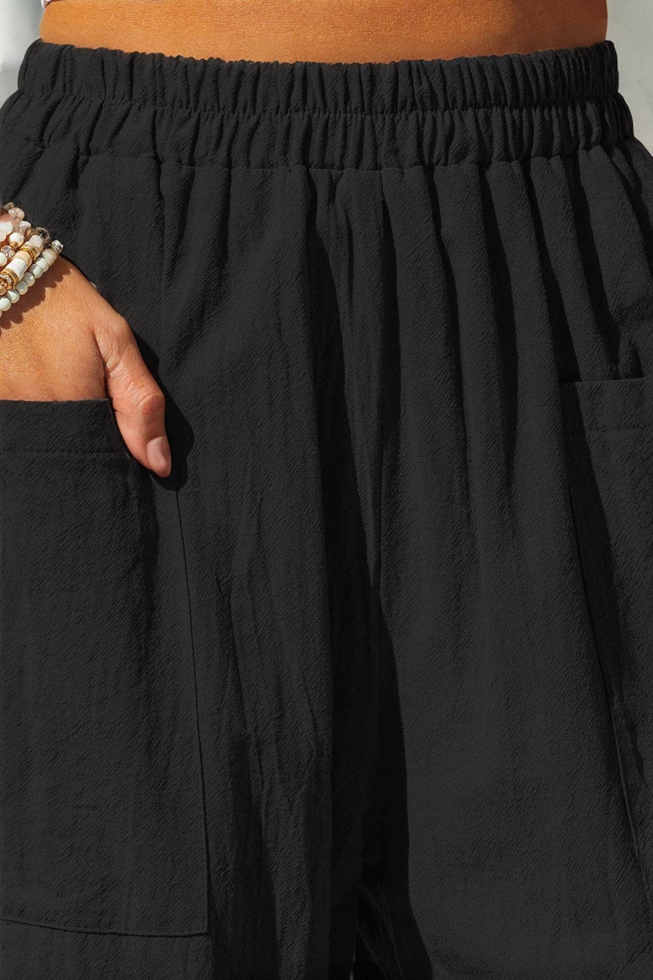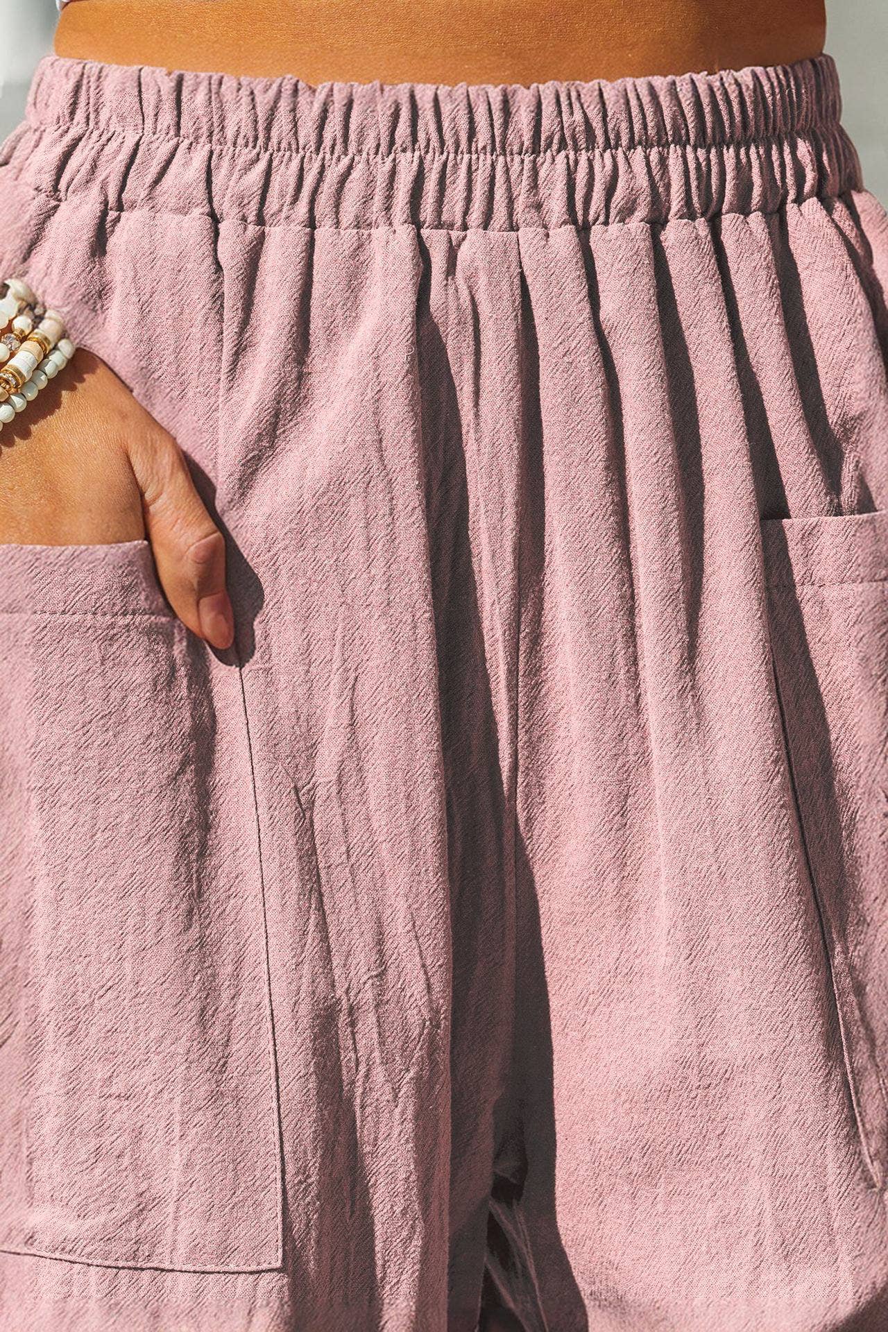 COTTON AND LINEN HOLIDAY STRETCH WAIST OVERALLS