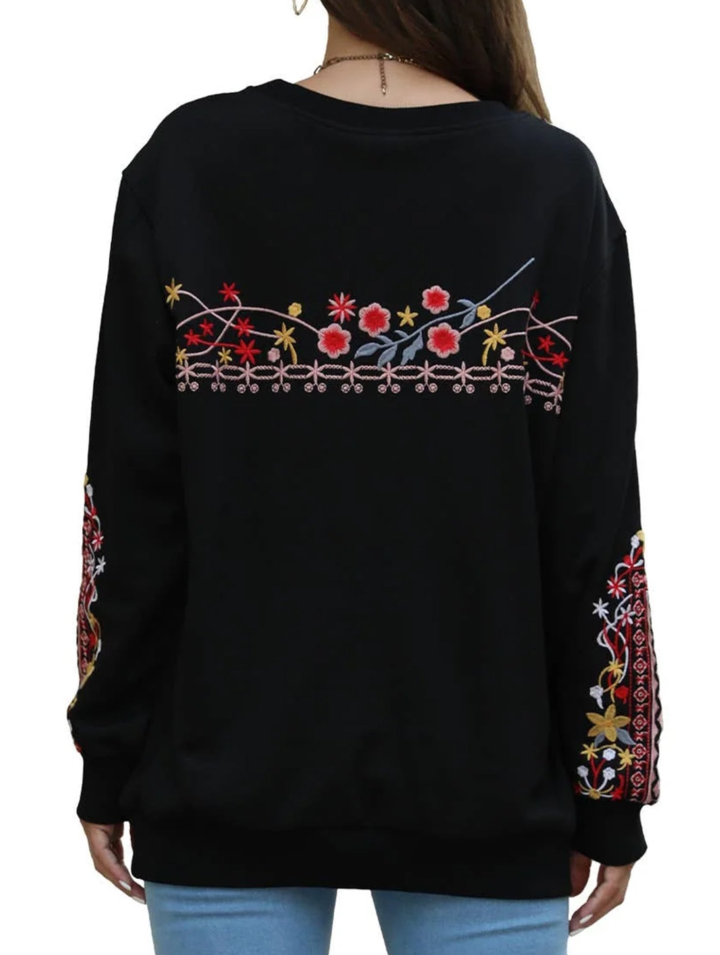 Cotton plus-size V-neck ethnic embroidered hoodie