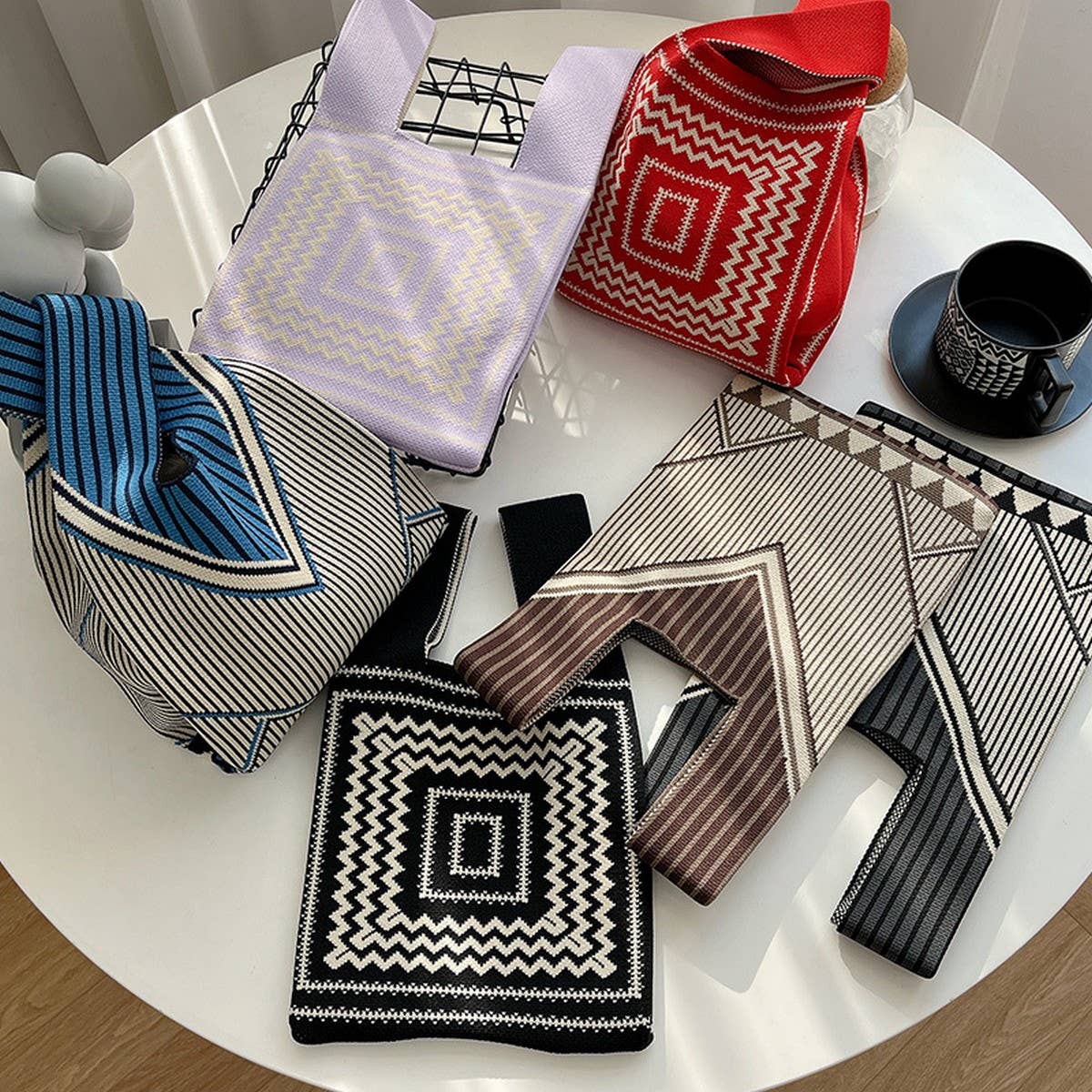 TEXTURED KNIT TOTE BAG WOMEN¡¯S STRIPED HANDBAG