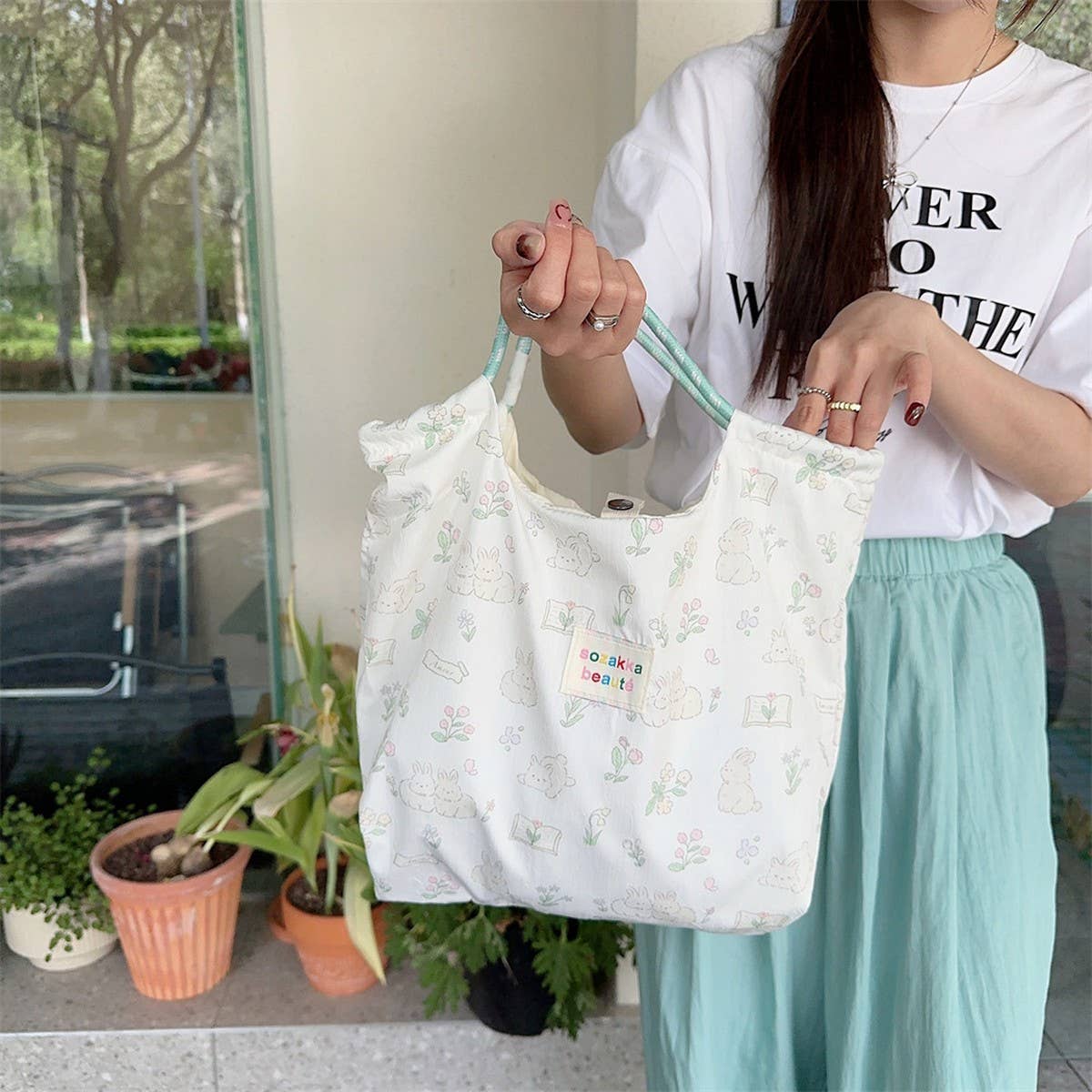 EMBOSSED CARTOON LARGE CAPACITY CANVAS HANDBAG