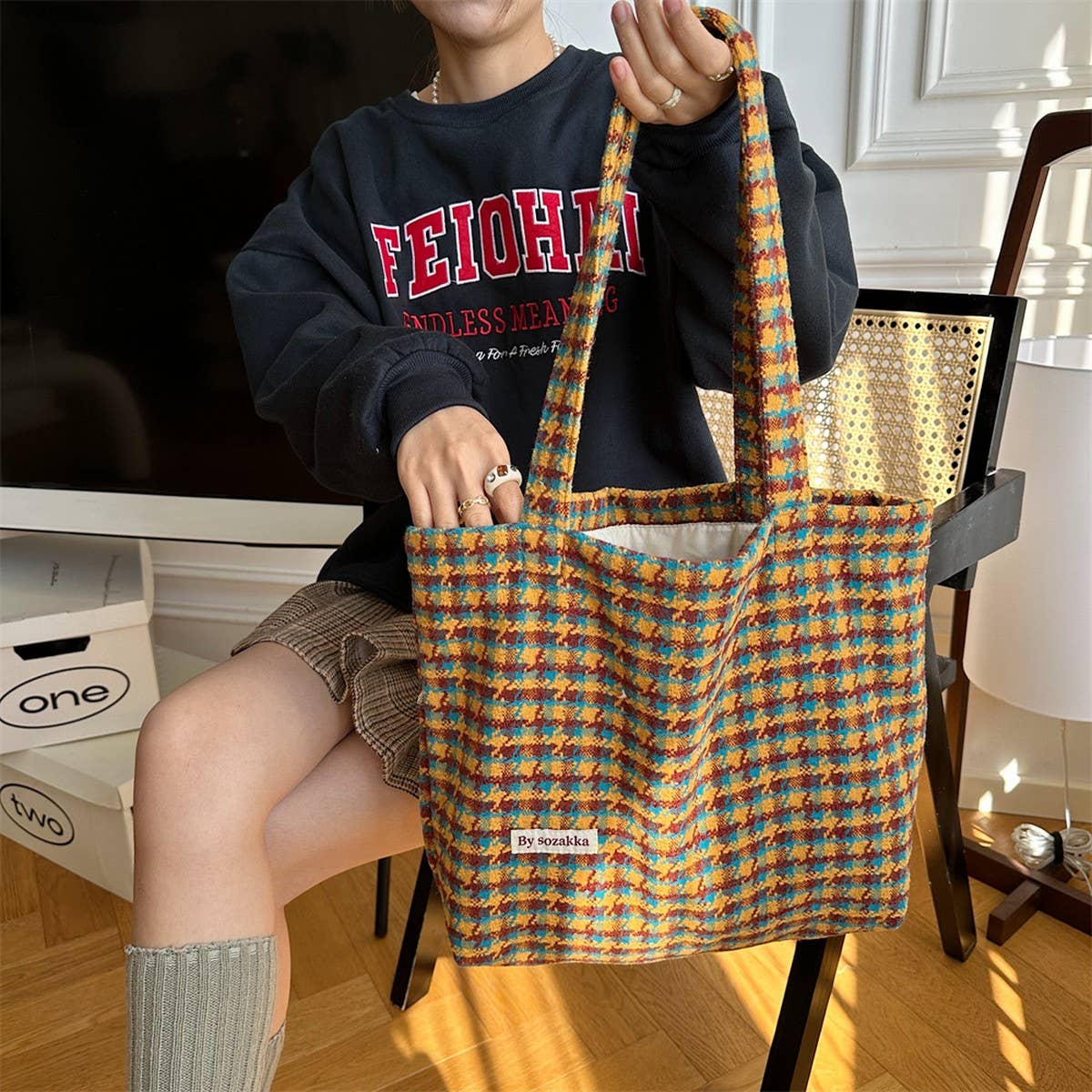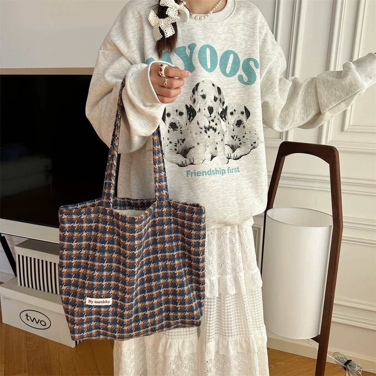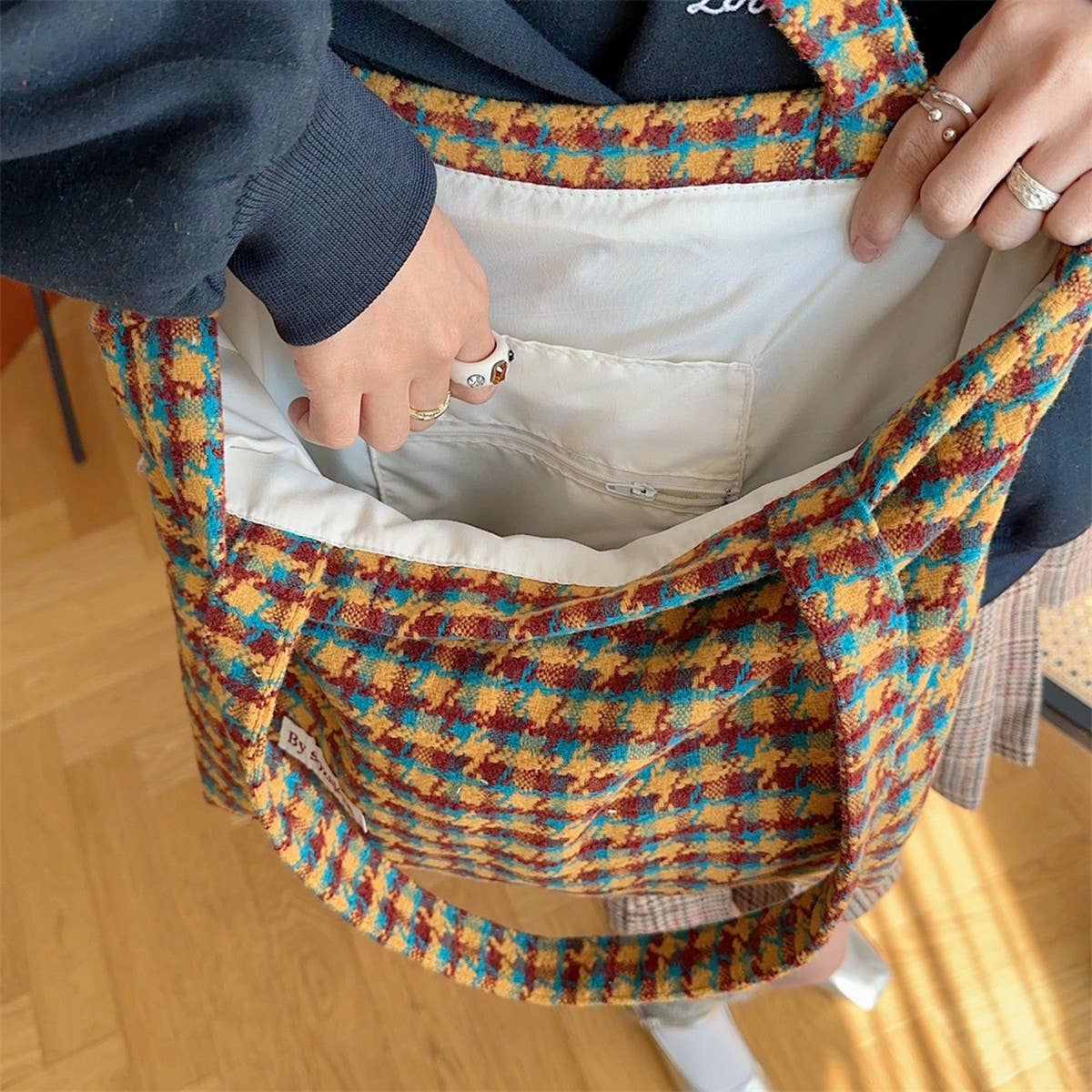 HOUNDSTOOTH LARGE CAPACITY SHOULDER BAG