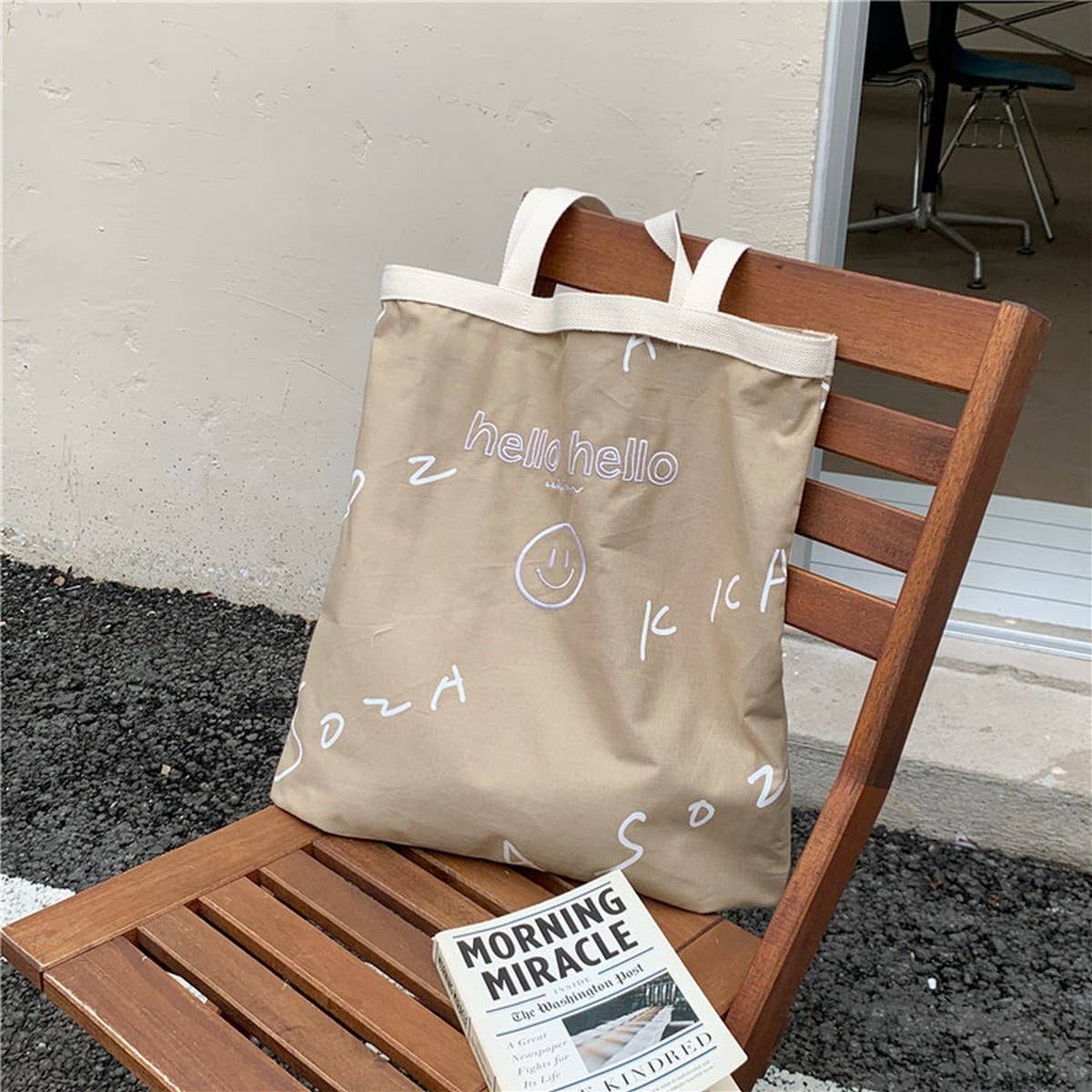 SIMPLE EMBROIDERED LETTER PRINT SHOULDER BAG