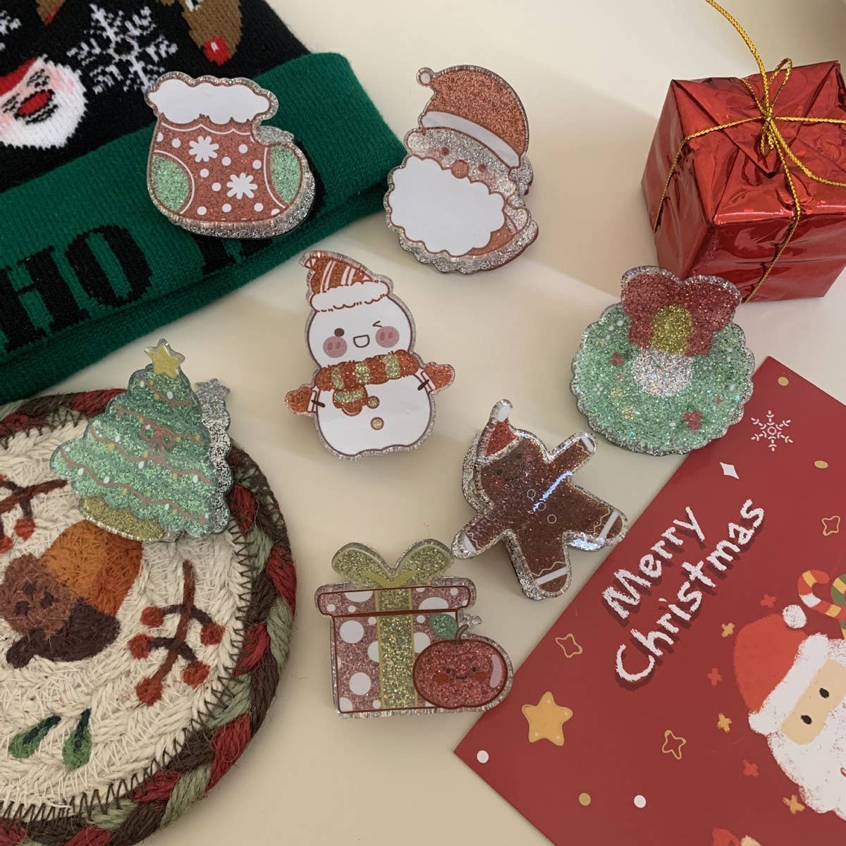 CHRISTMAS ACRYLIC SANTA REINDEER HAIR CLAW CLIP