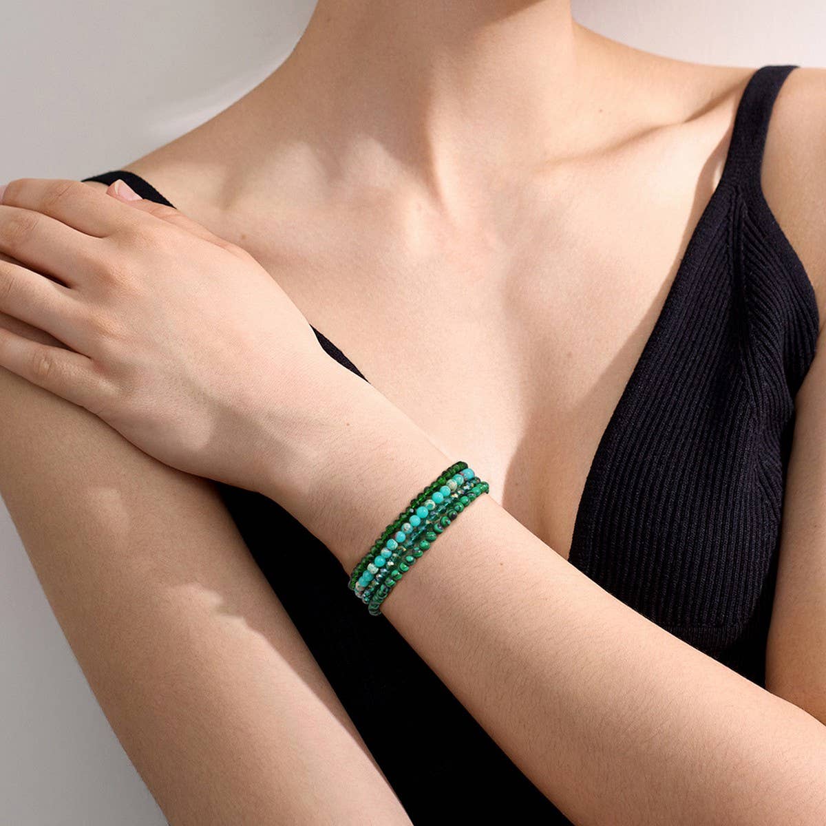 GLASS BEAD STONE BEADED FOUR-PIECE BRACELET