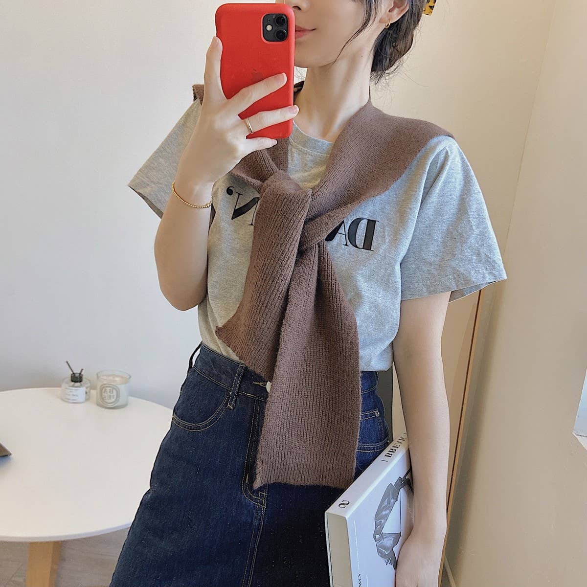 STRIPED KNIT PONCHO SHAWL FOR WOMEN