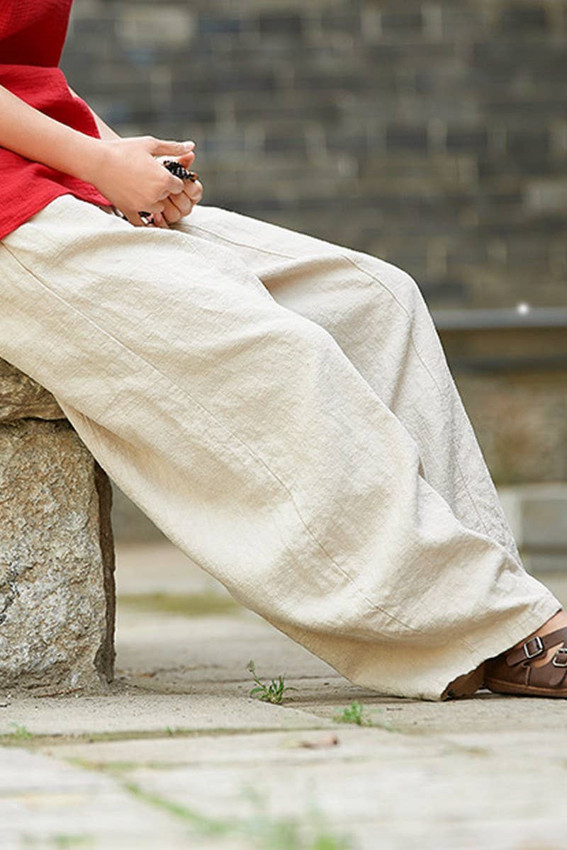 COTTON AND LINEN WASHED LOOSE CASUAL BLOOMERS
