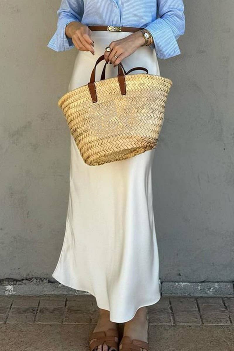 SOLID COLOR SATIN HIGH WAIST HIP SKIRT