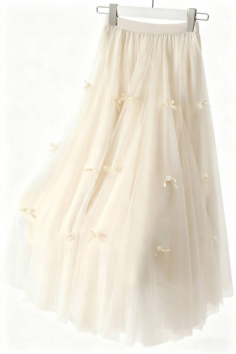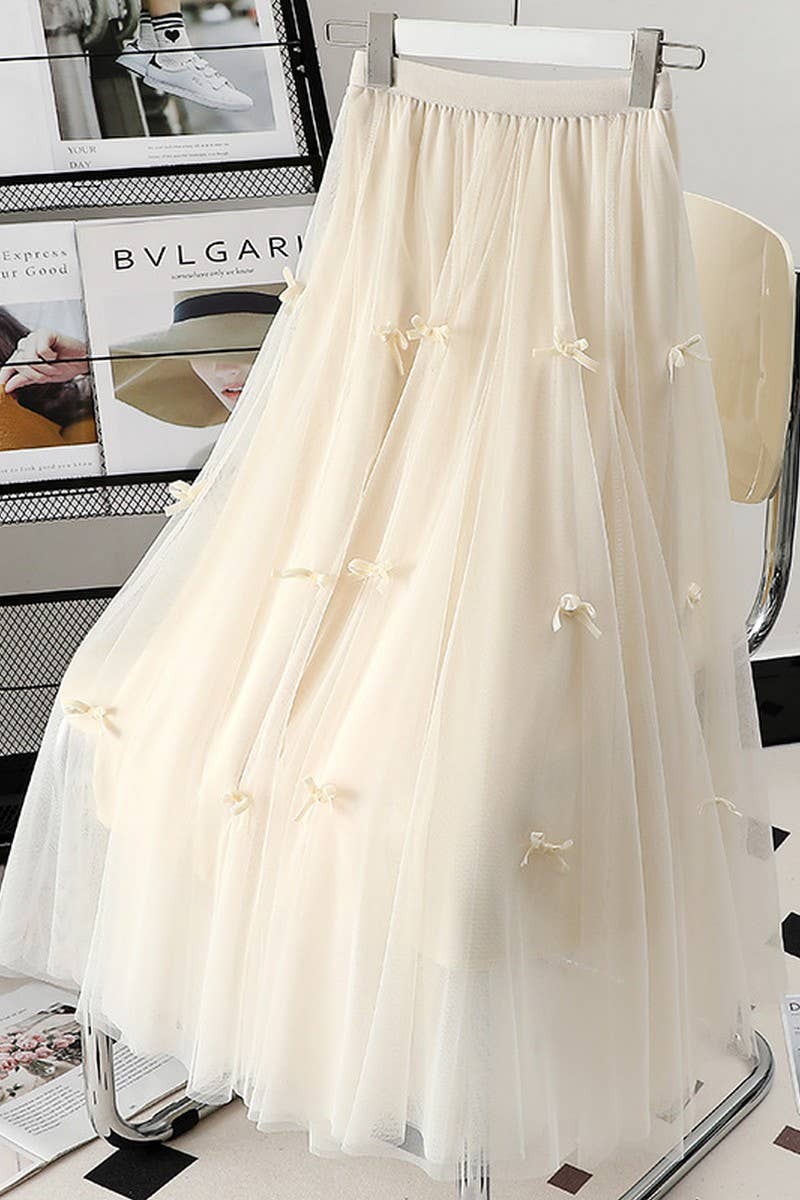 2023 BOW MESH A-LINE MIDI SKIRT WOMEN