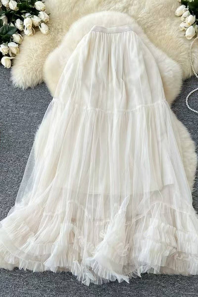HIGH WAIST RUFFLE TULLE A-LINE SKIRT