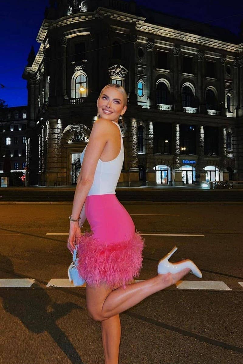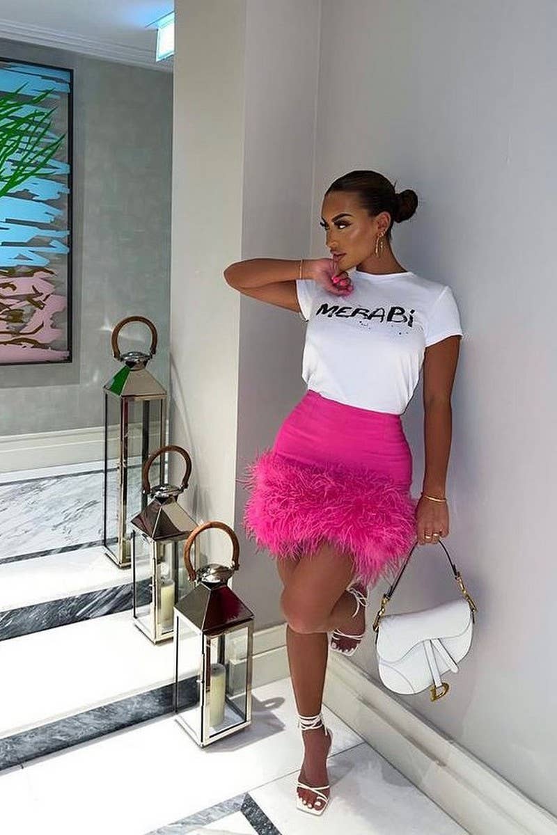 PARTY SEXY SHORT SKIRT FEATHER HIP SKIRT