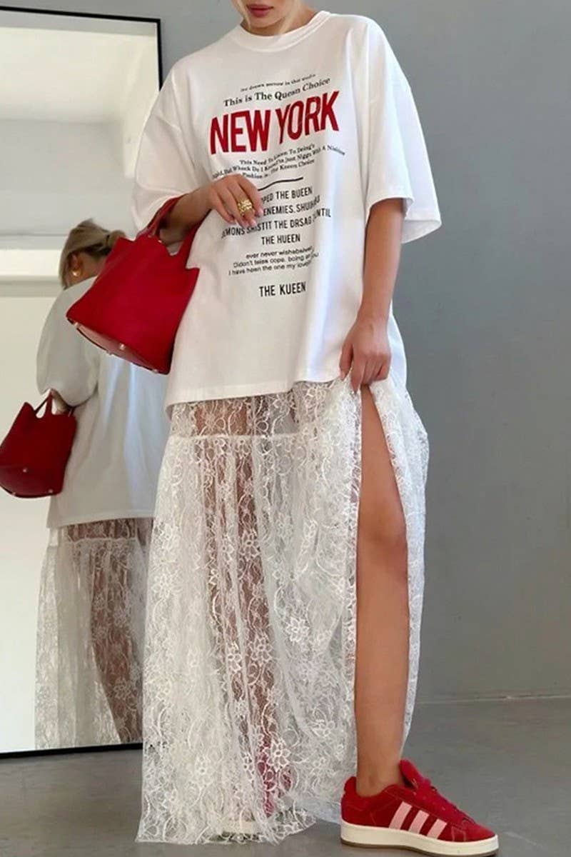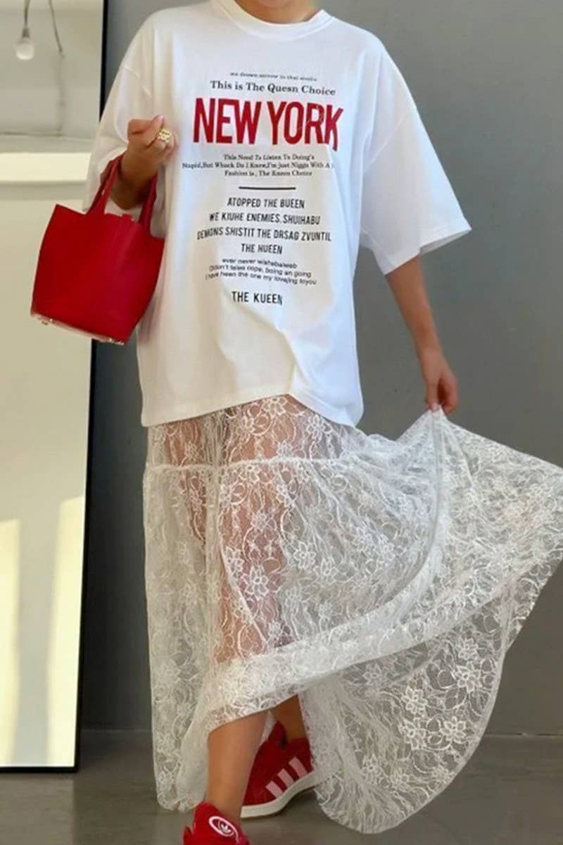 JACQUARD SEE-THROUGH HIGH-WAIST LACE SKIRT