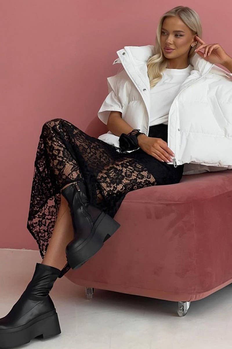 SEXY JACQUARD SEE-THROUGH LACE HOLLOW SKIRT