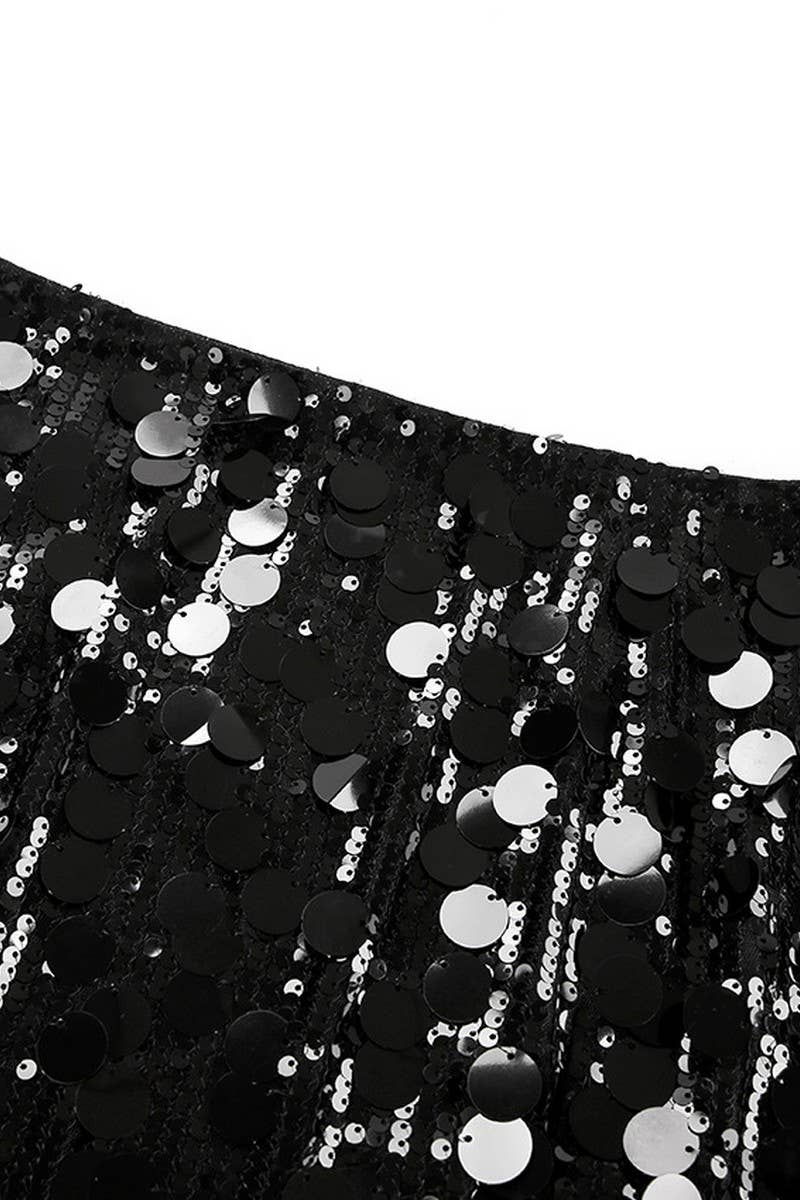 HIGH WAIST SOLID COLOR SEQUINED MINI SKIRT