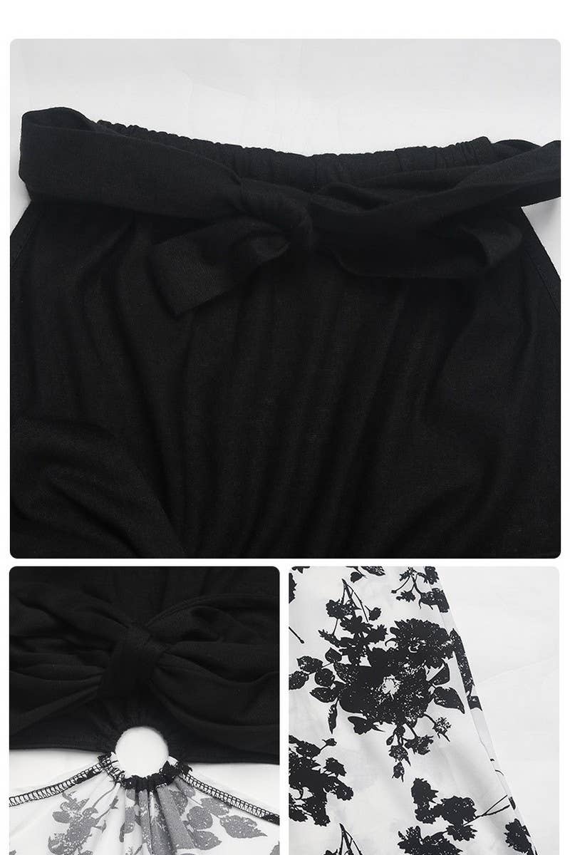 HIGH WAIST PRINTED PANEL HALTER NECK DRESS
