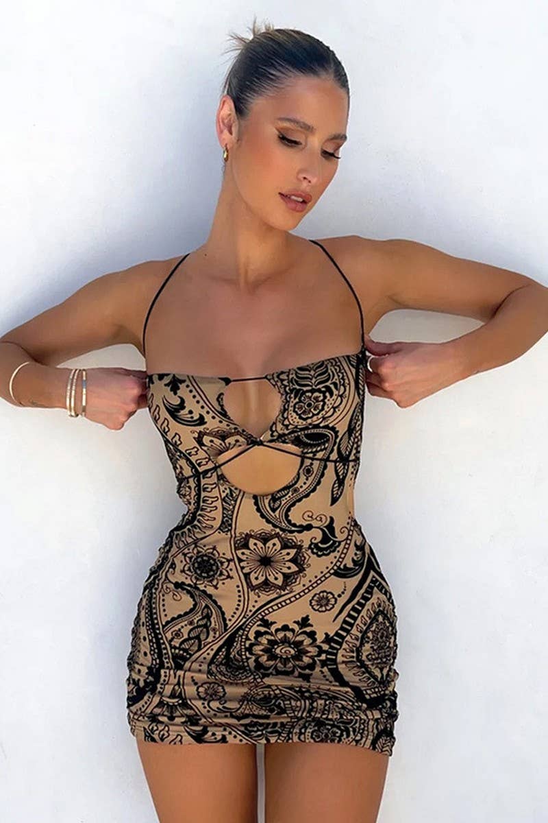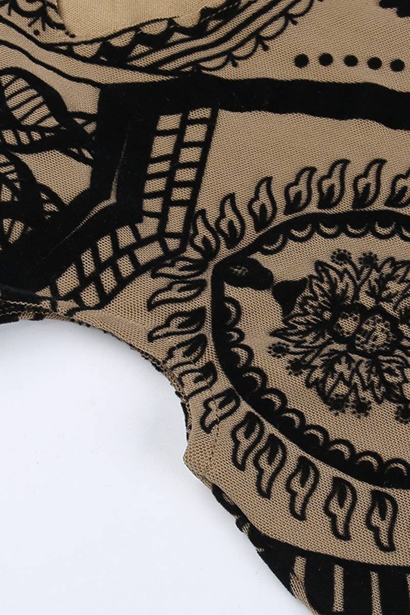 FLOCKING PRINT HOLLOW HIP-WRAPPED SUSPENDER SKIRT
