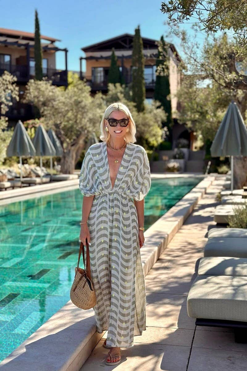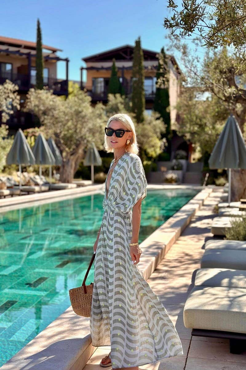FLORAL V-NECK BELTED VACATION MAXI DRESS