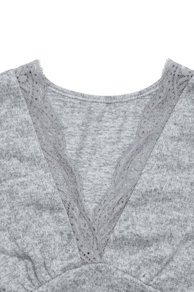 V-NECK SOLID COLOR BRUSHED SLIT LONG SKIRT
