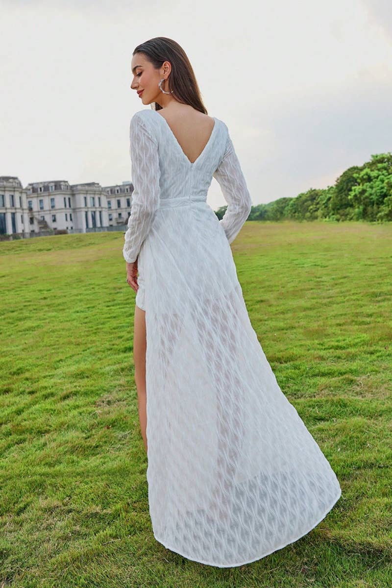 ELEGANT DEEP V MESH SPLIT DRESS DRESS LONG