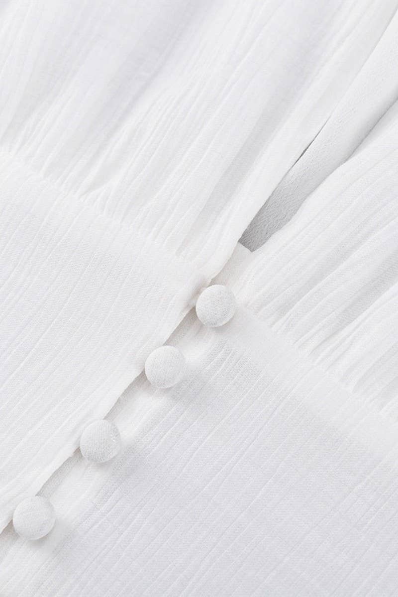 V-NECK BUTTON PUFF SLEEVE SLIM-FIT SLIT MAXI DRESS