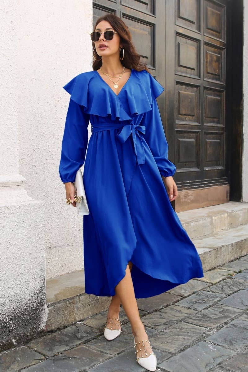 AUTUMN RUFFLED LONG-SLEEVED LACE-UP DRESS