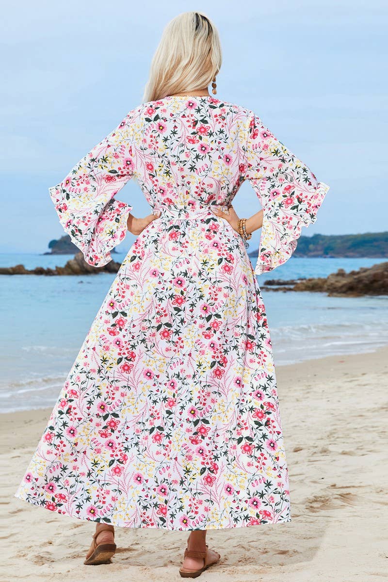 IRREGULAR V-NECK TIE SLIT BACKLESS RUFFLE DRESS