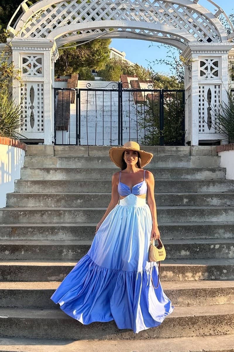 GRADIENT COLOR SUSPENDER LONG DRESS