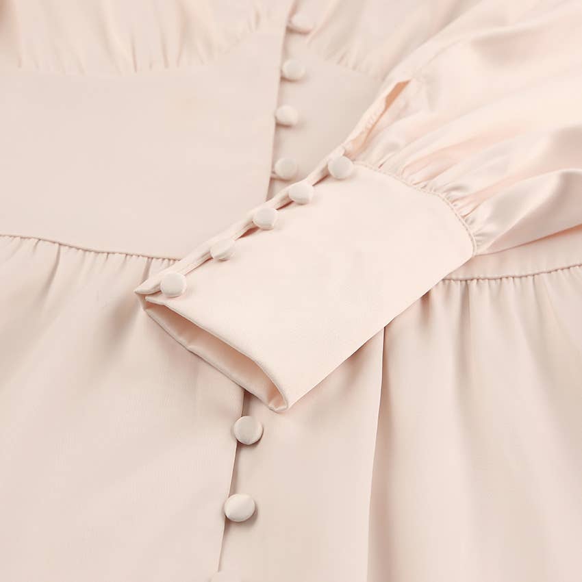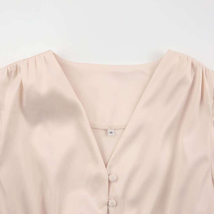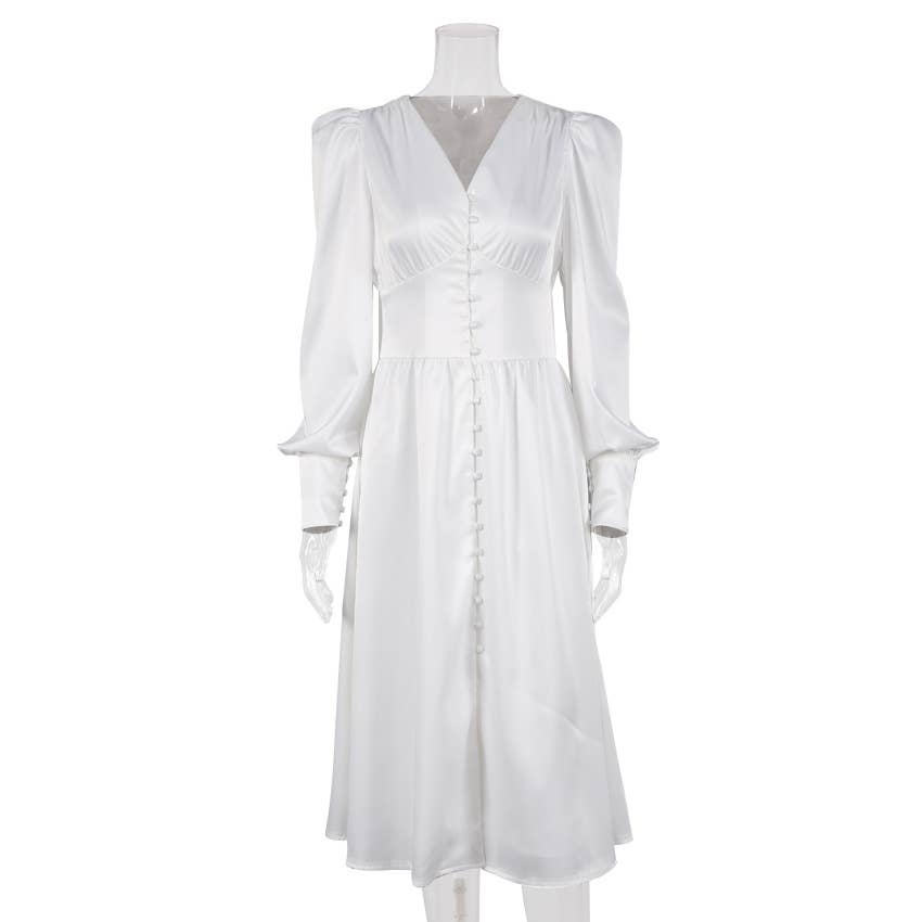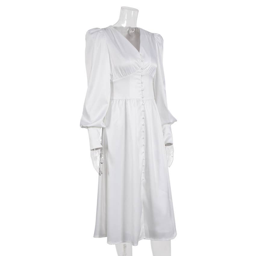 CWDMD4167_VINTAGE SATIN COURT DRESS WITH WAIST AND V-NECK