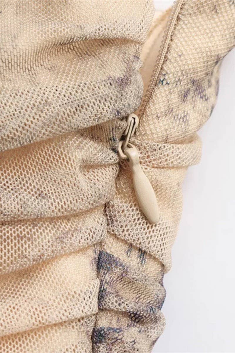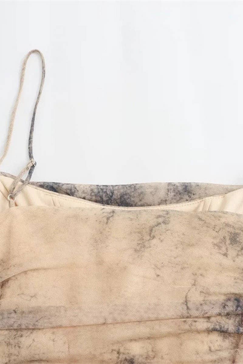 SLIM FIT TULLE PRINT SUSPENDER DRESS